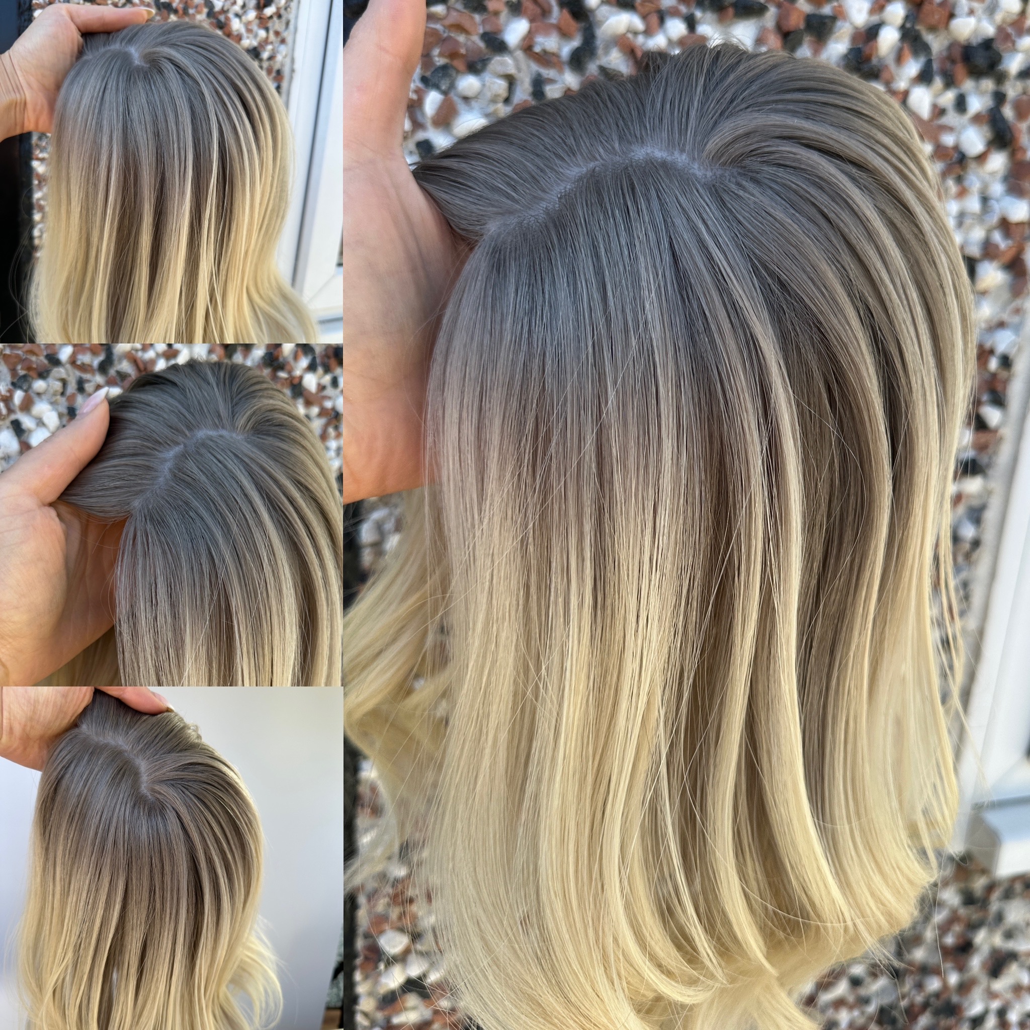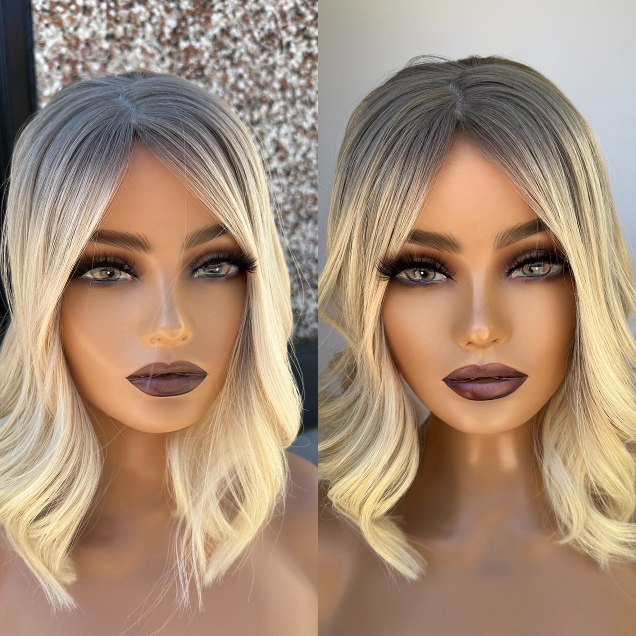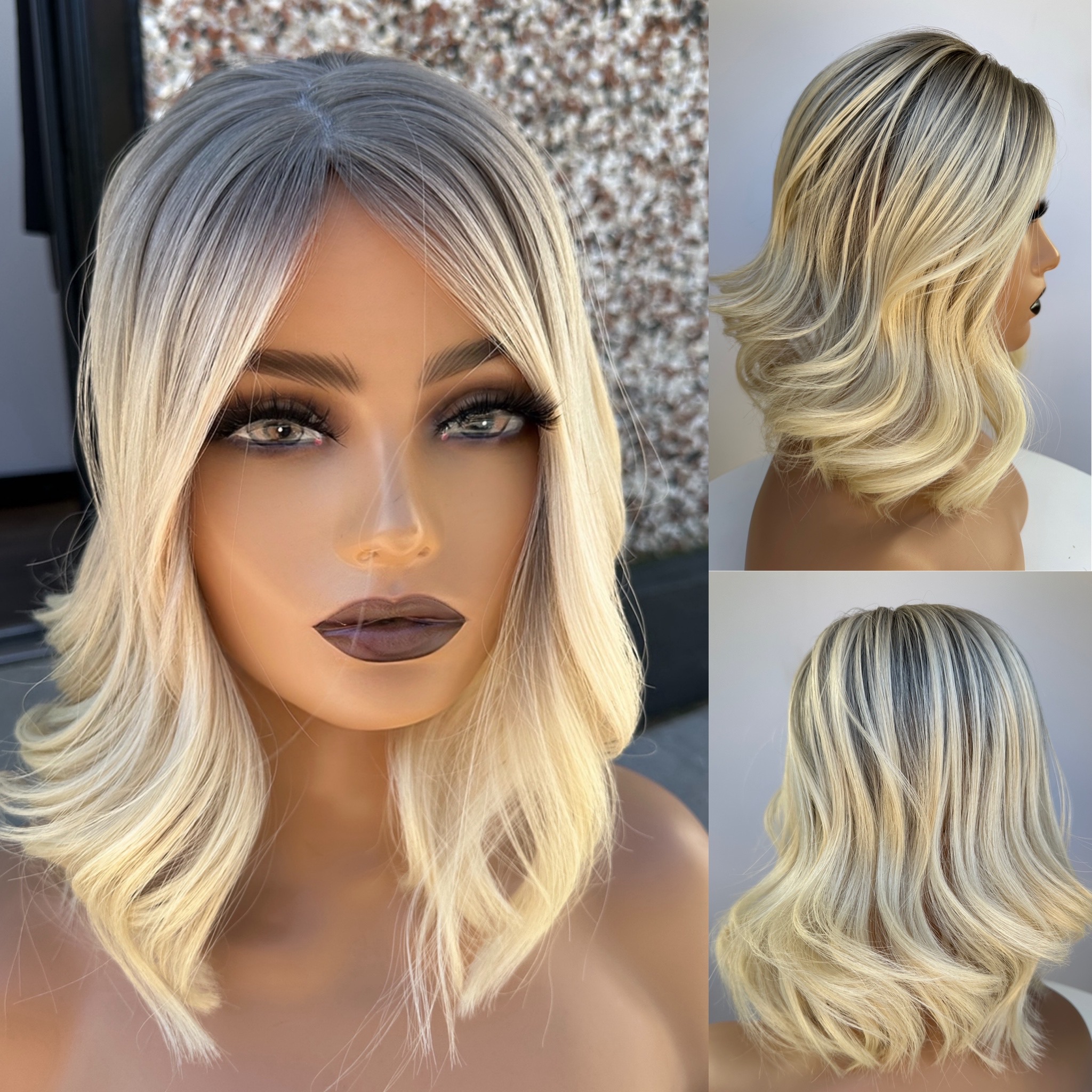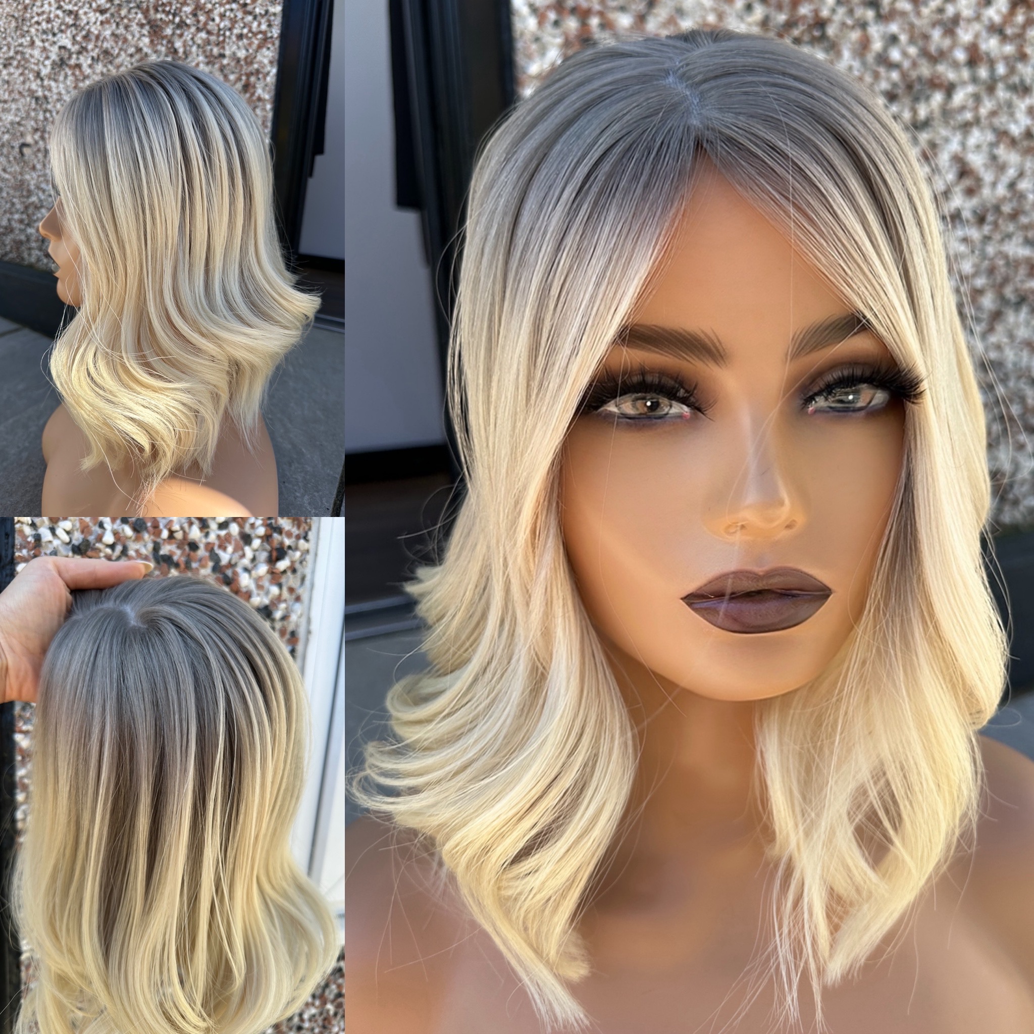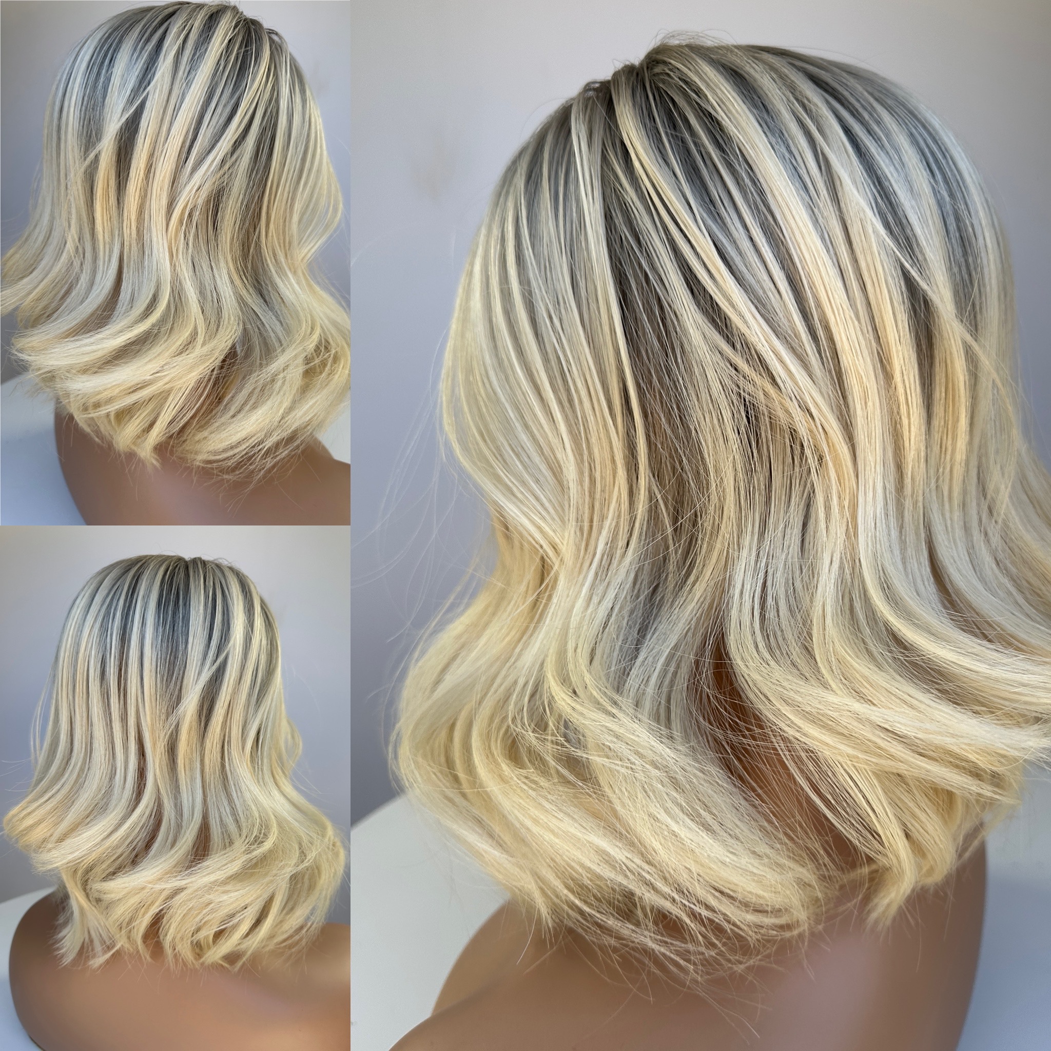 Bright Blonde (slight yellow/warmth left in the base) finished with Level 8 Natural 3D Effect Roots/Ombre