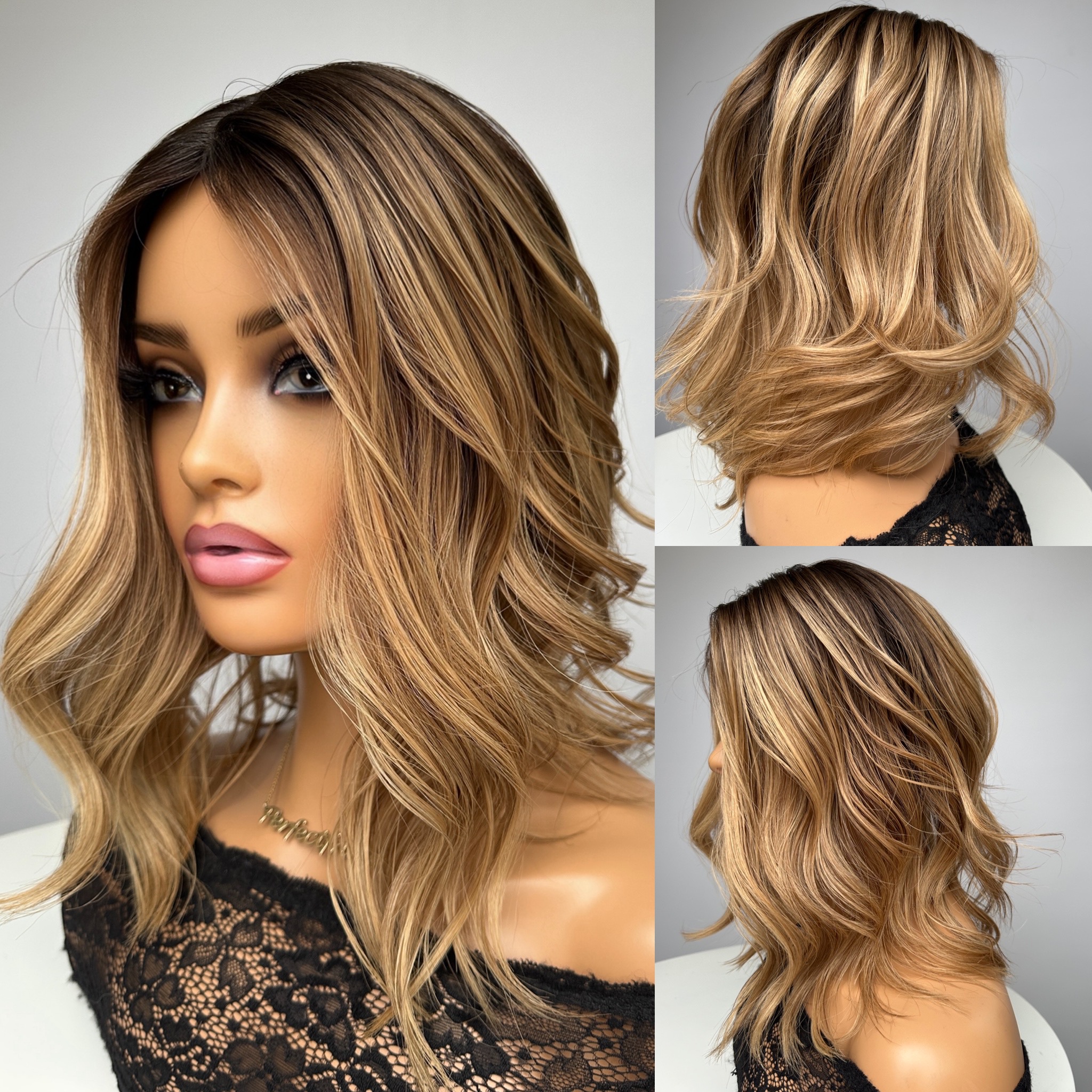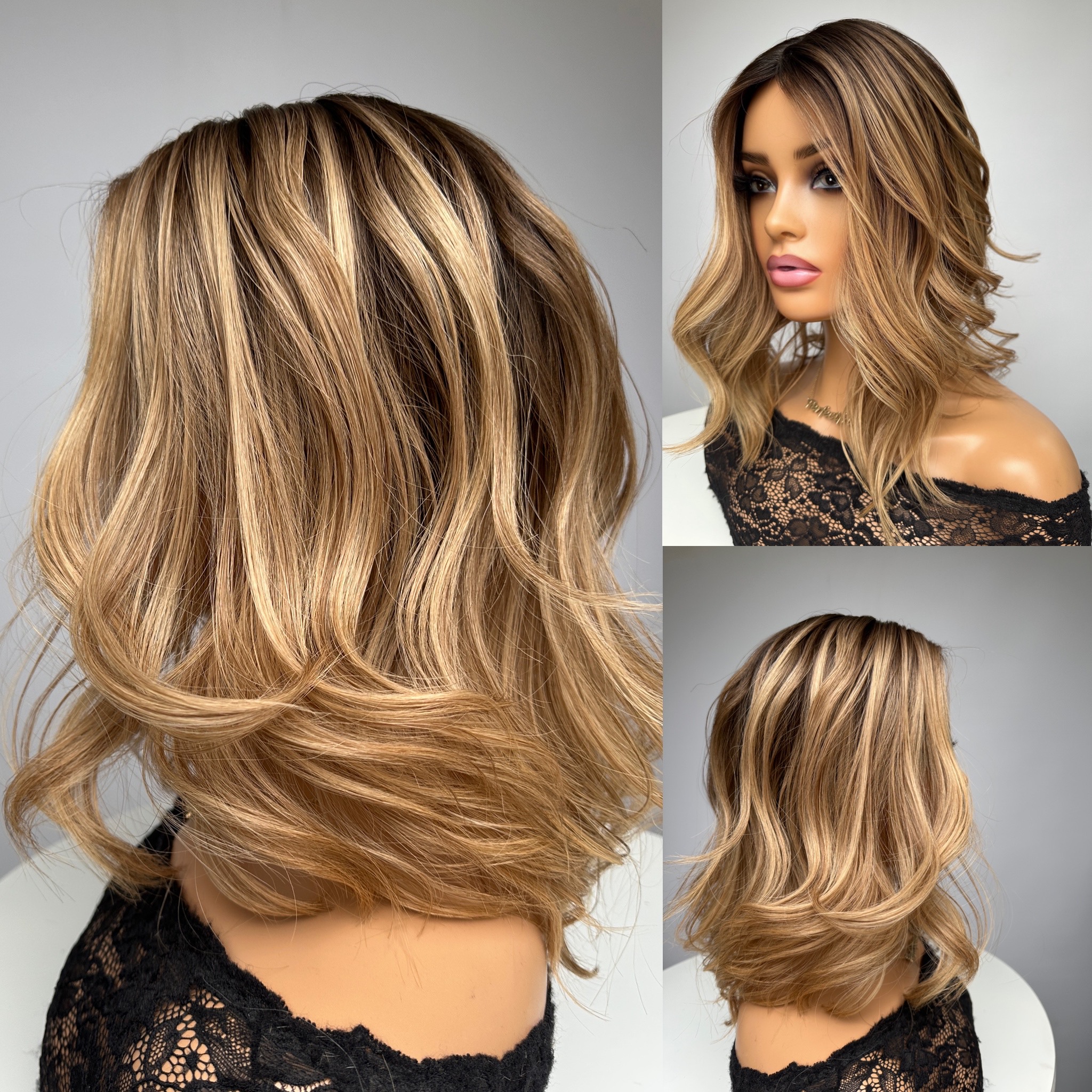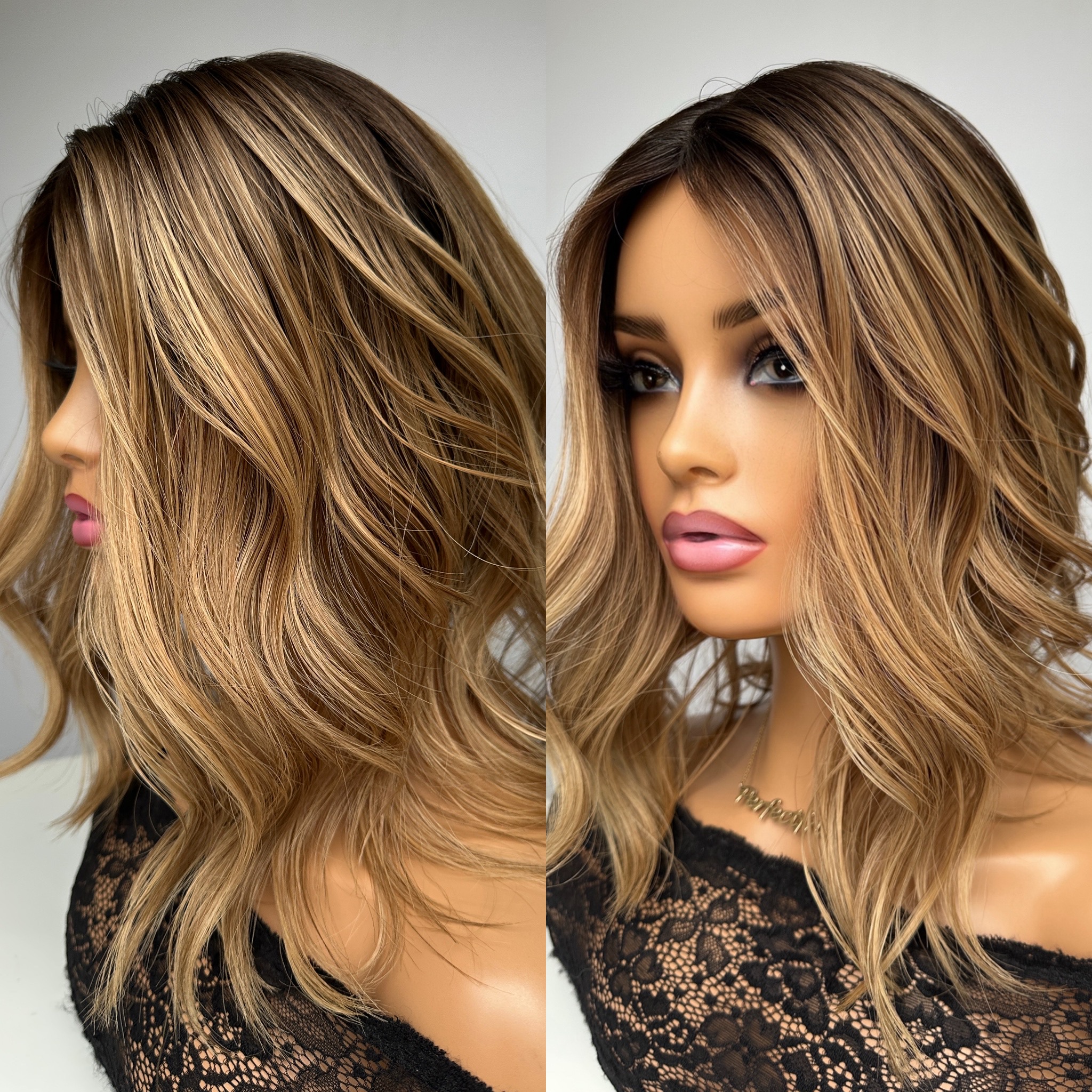 Dark Blonde, Caramel Honey, Light Brown Mix with Level 6/7 Light/Medium Brown Root/Ombre