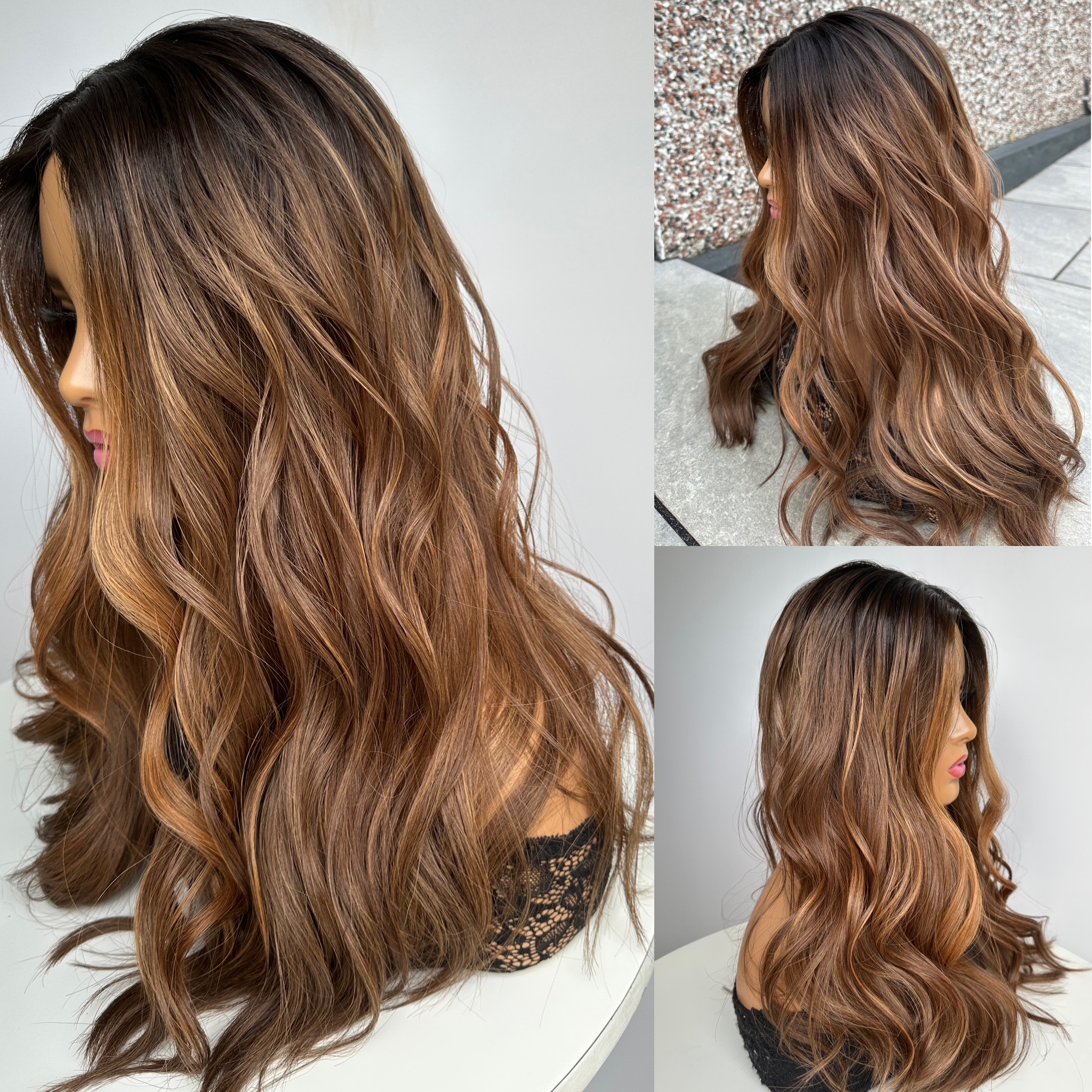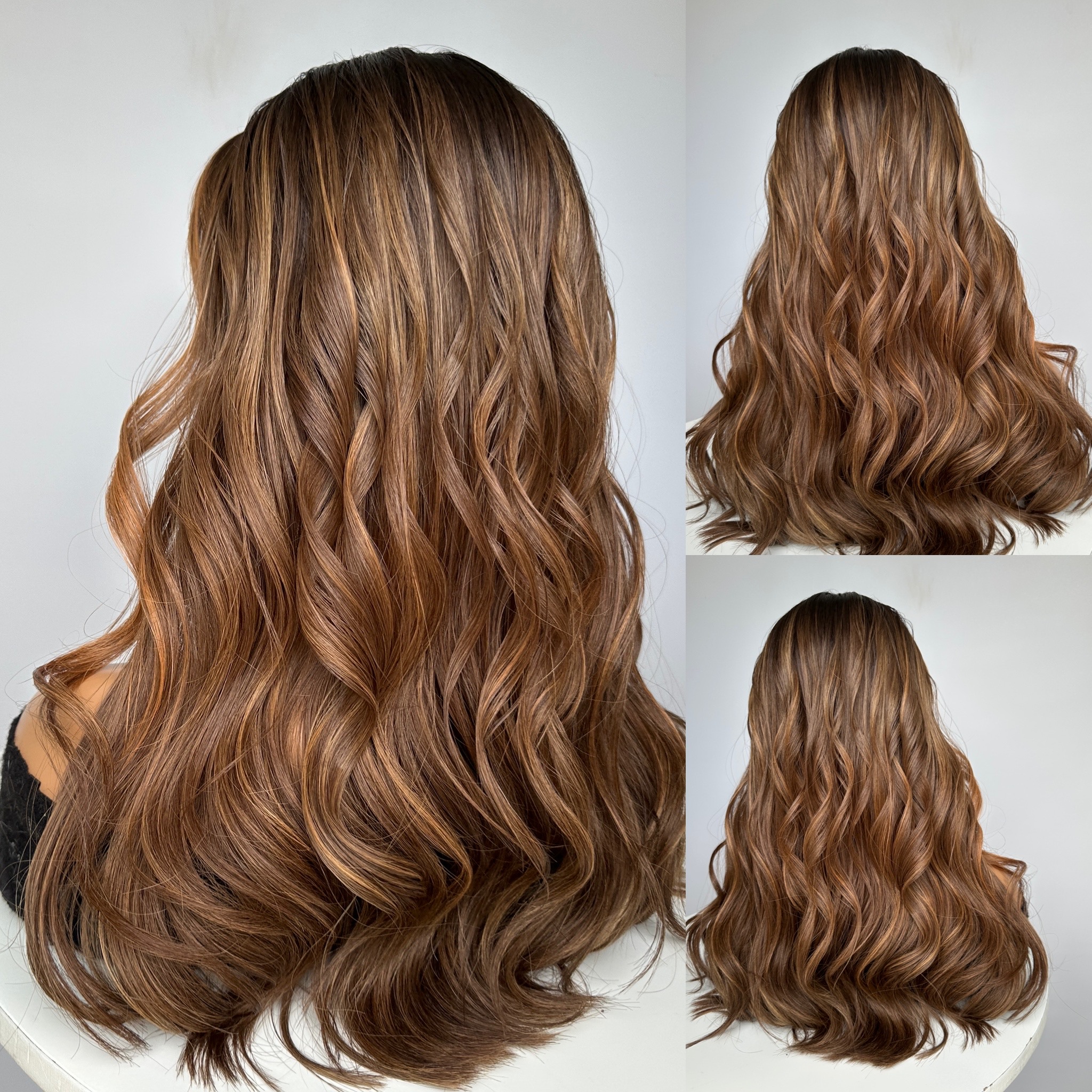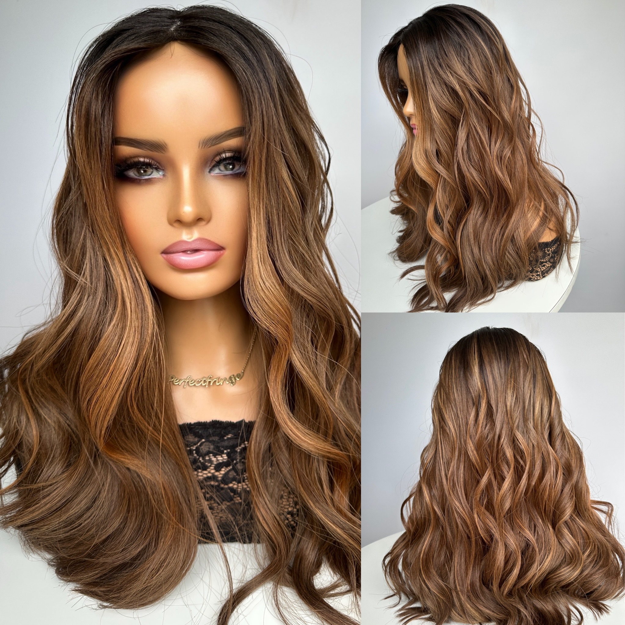 Medium Brown with Fiery Gold, Bronze & Copper Highlights, Money Piece and Dark Brown Roots