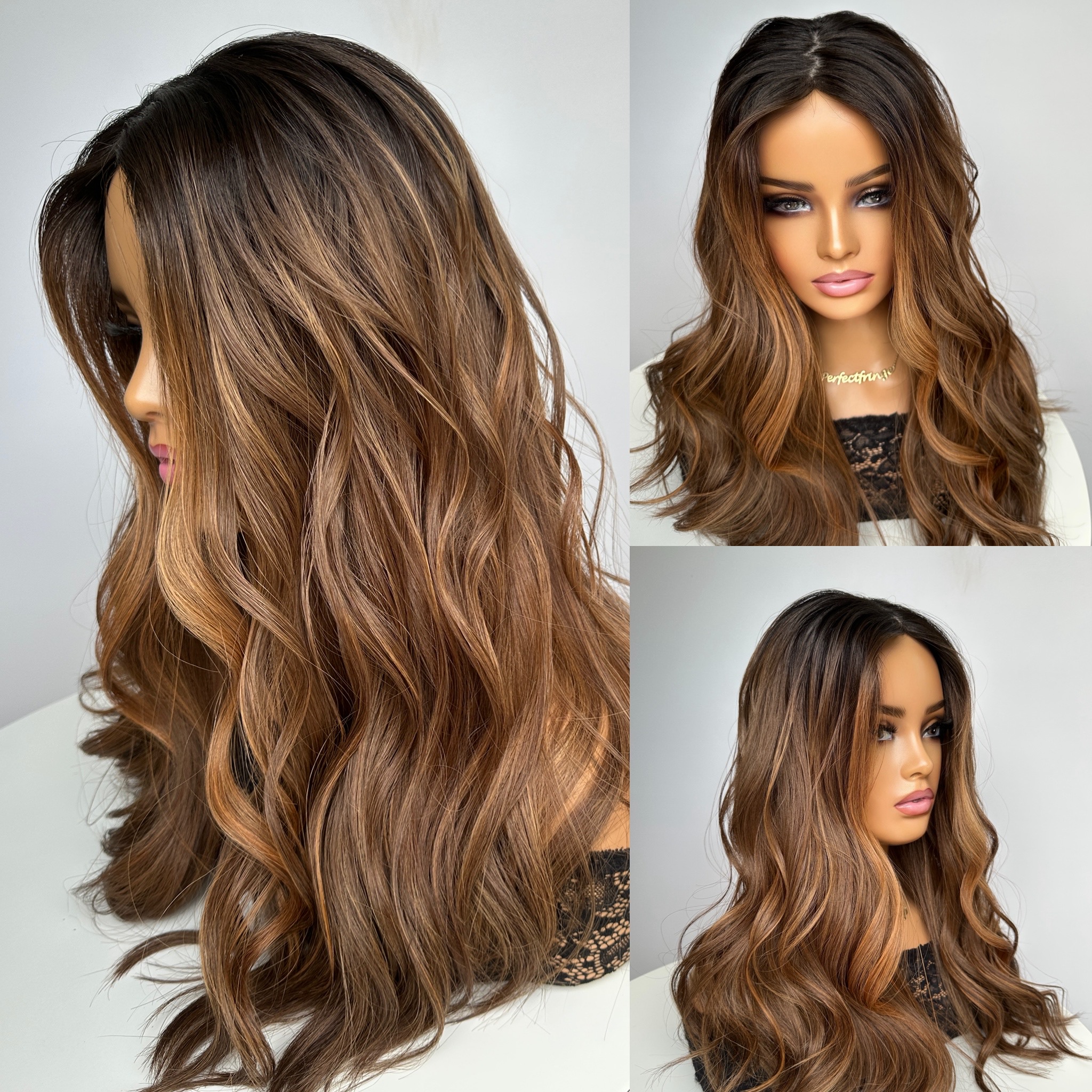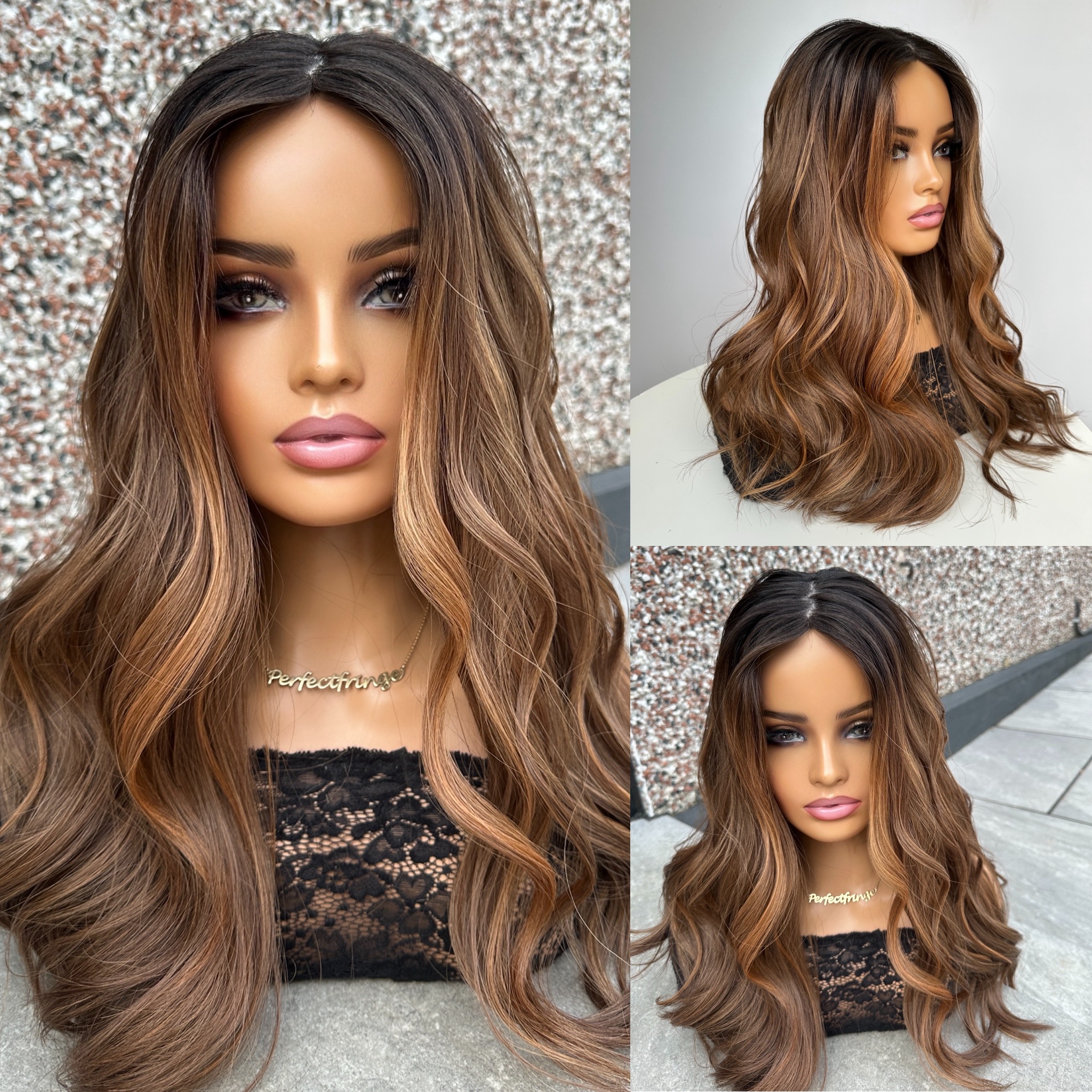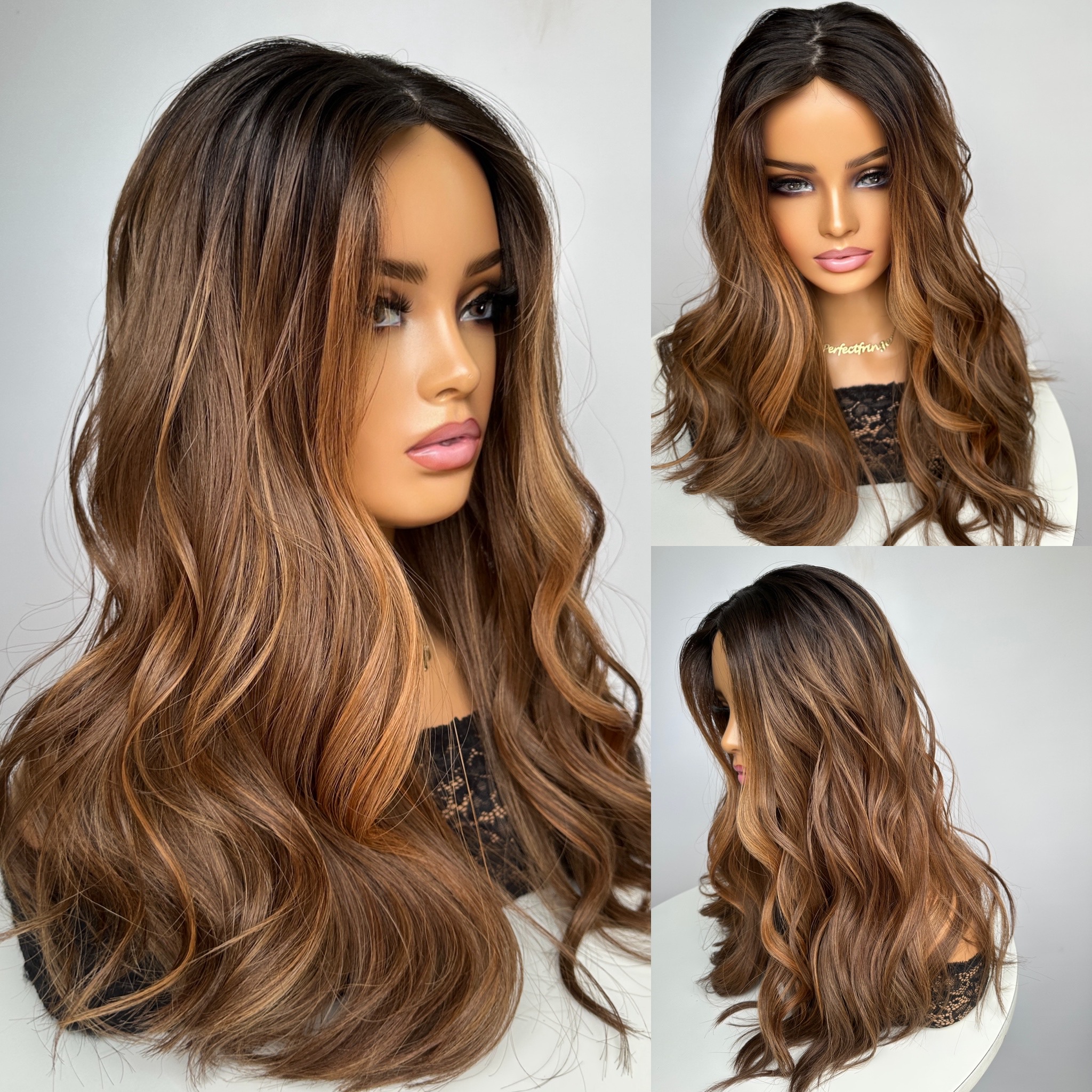 Medium Brown with Fiery Gold, Bronze & Copper Highlights, Money Piece and Dark Brown Roots