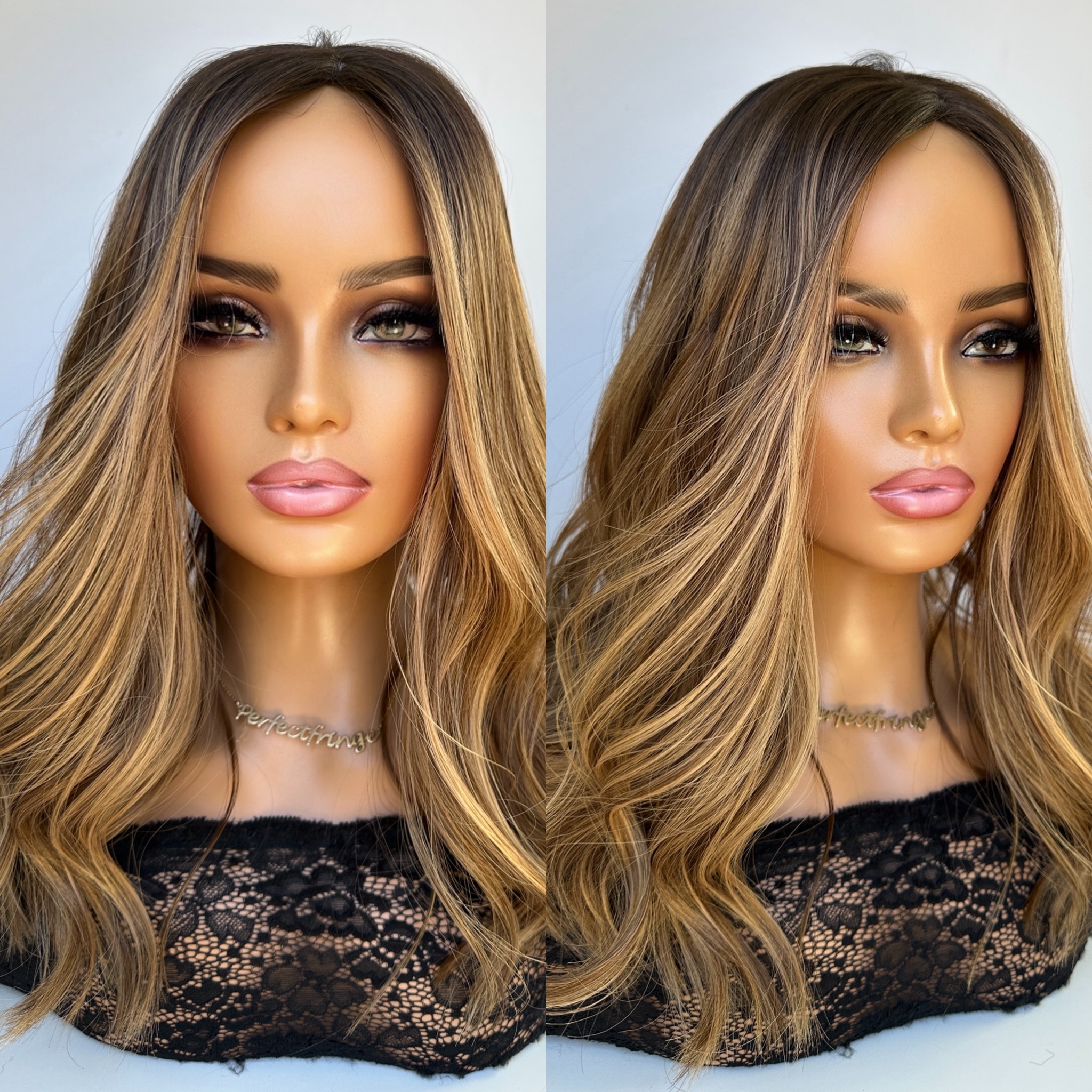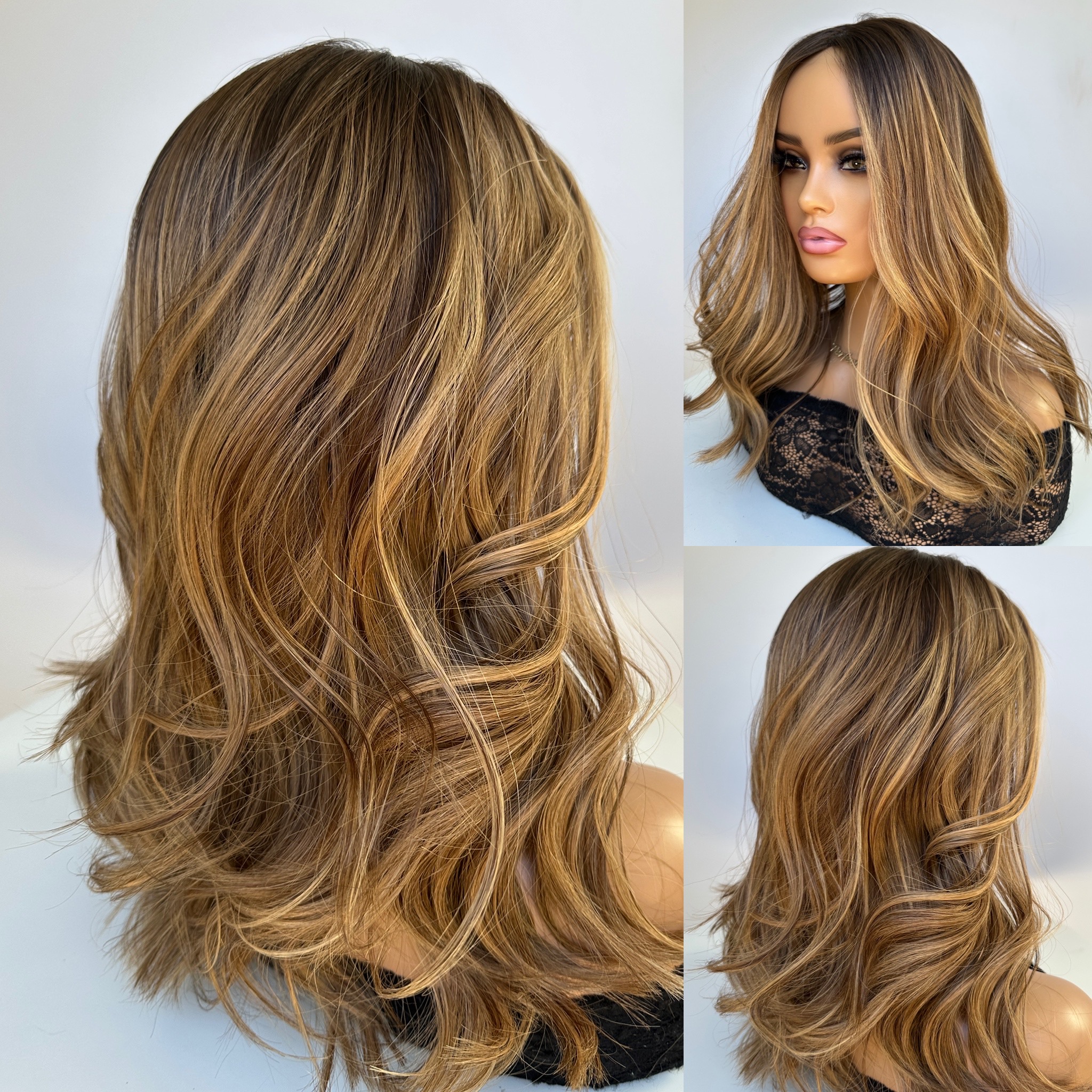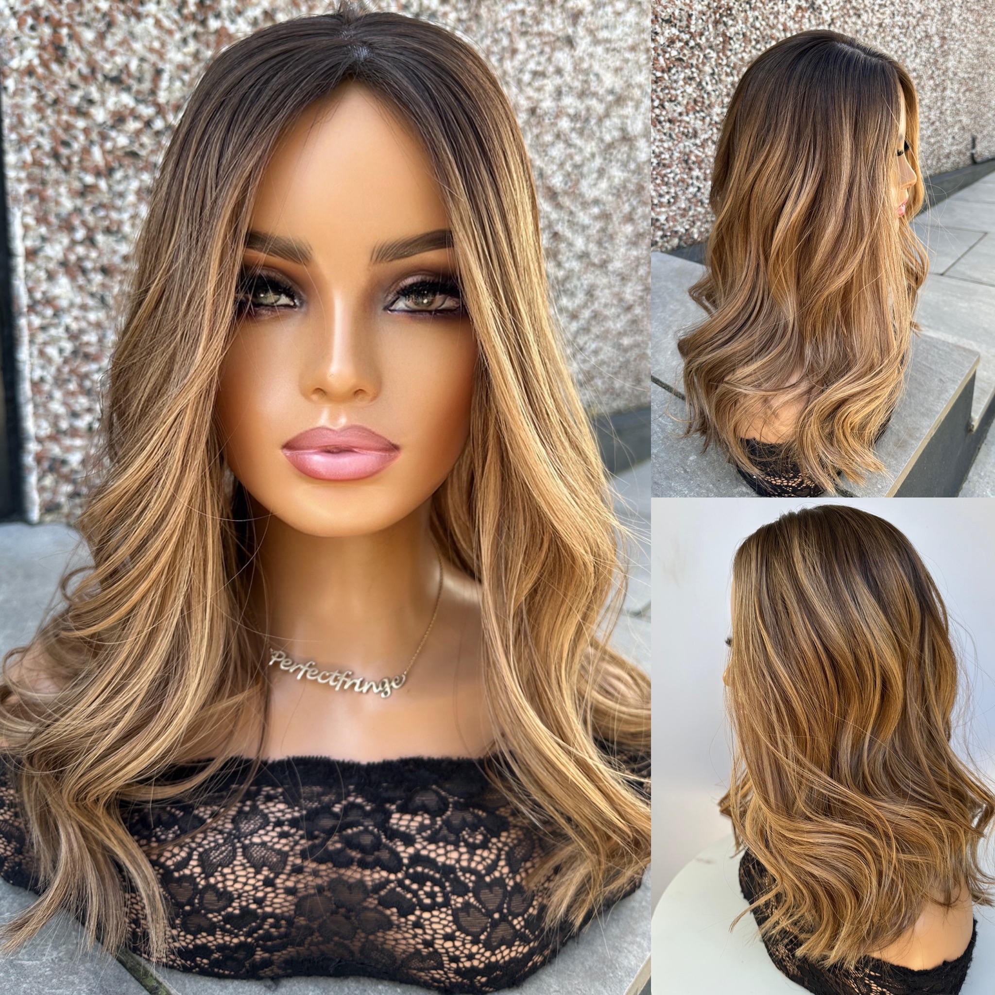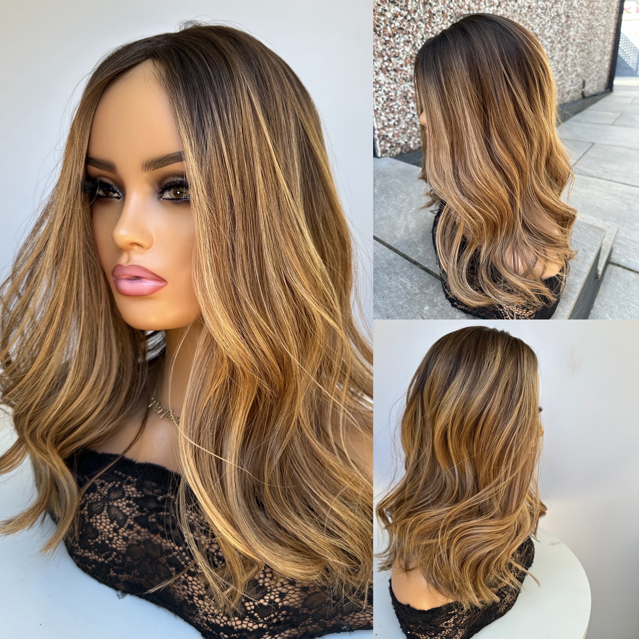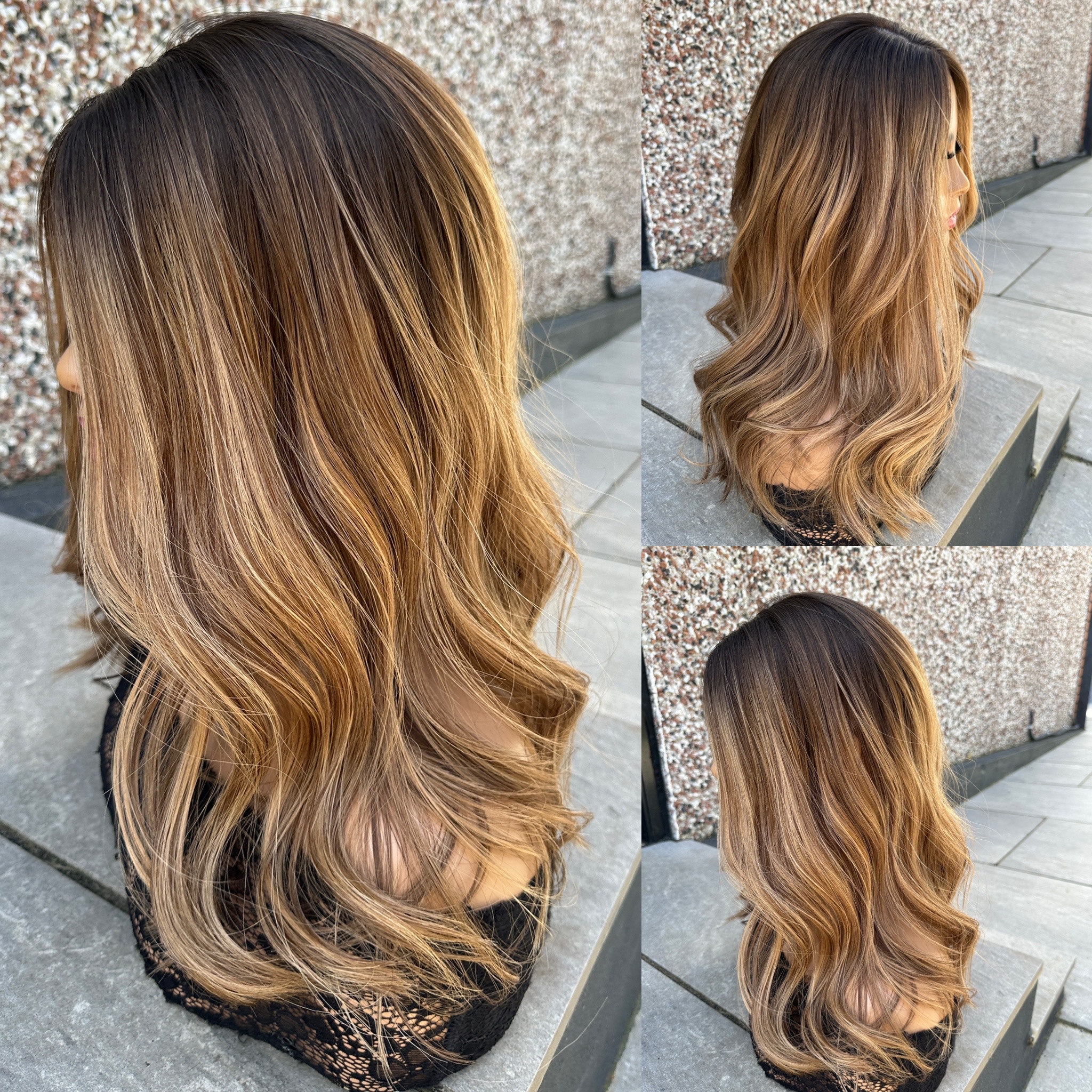 Mind-blowing mix of blonde, browns and sun-kiss (think Bronde) and a warm chocolate level 6/7 ombre