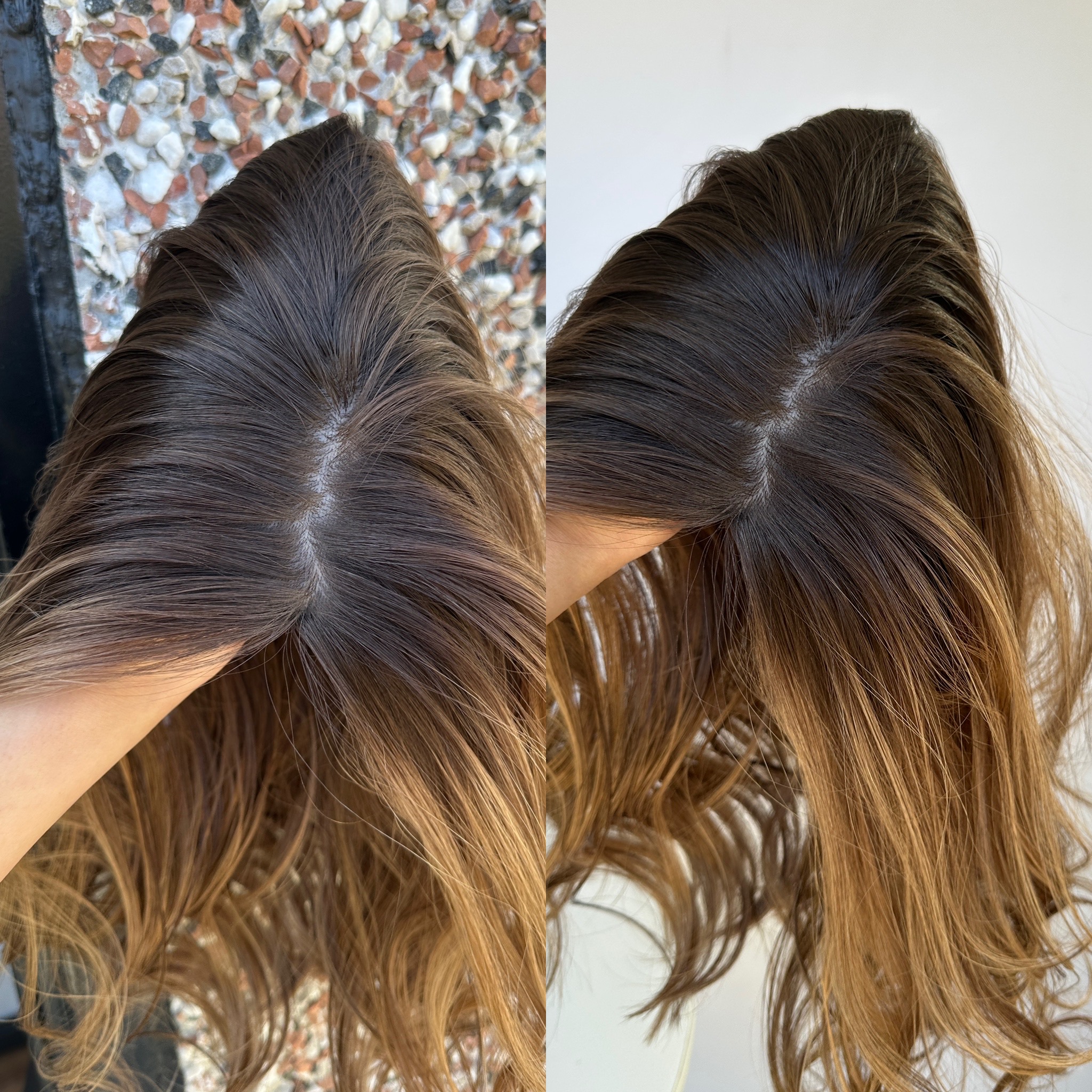 A Luxury Silk Hair Topper which blends beautifully with your own hair to hide hair loss and thinning. The end result is natural and undetectable.