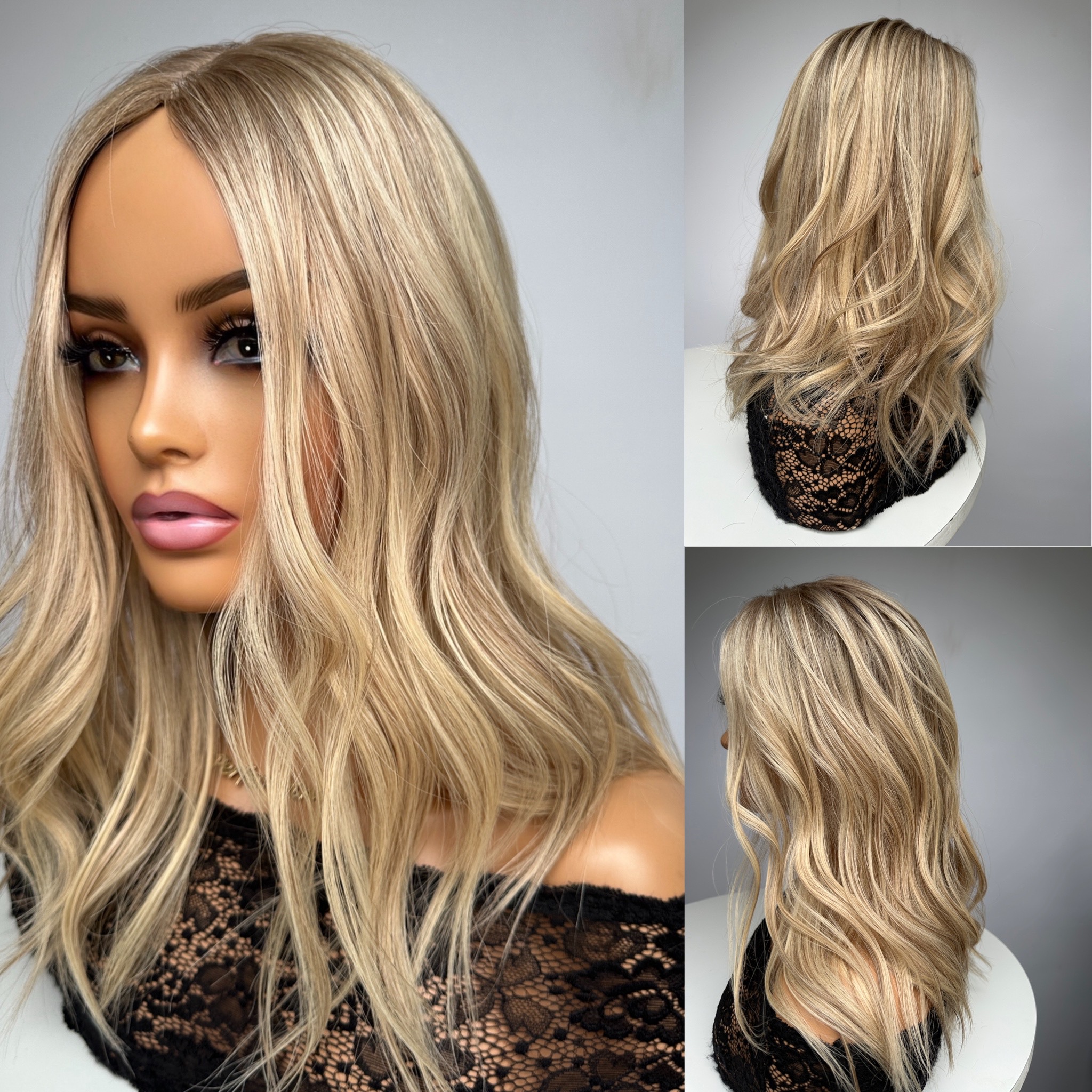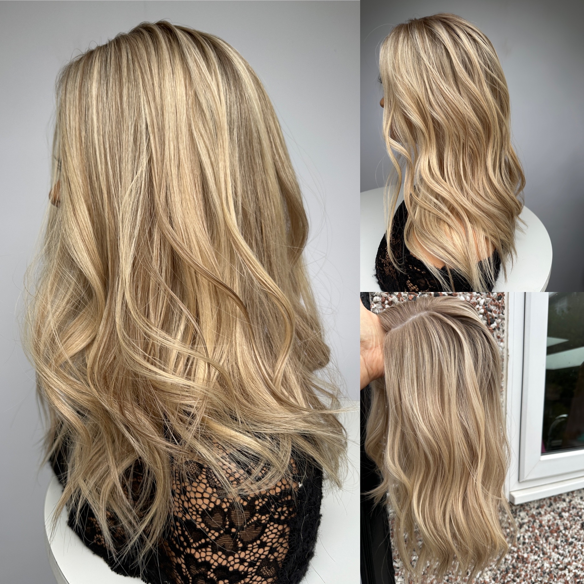 A Luxury Silk Hair Topper which blends beautifully with your own hair to hide hair loss and thinning. The end result is natural and undetectable.