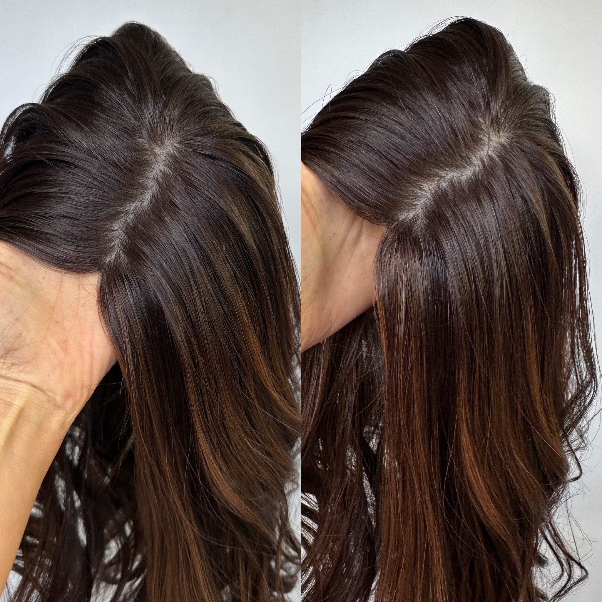 A Luxury Silk Hair Topper which blends beautifully with your own hair to hide hair loss and thinning. The end result is natural and undetectable.