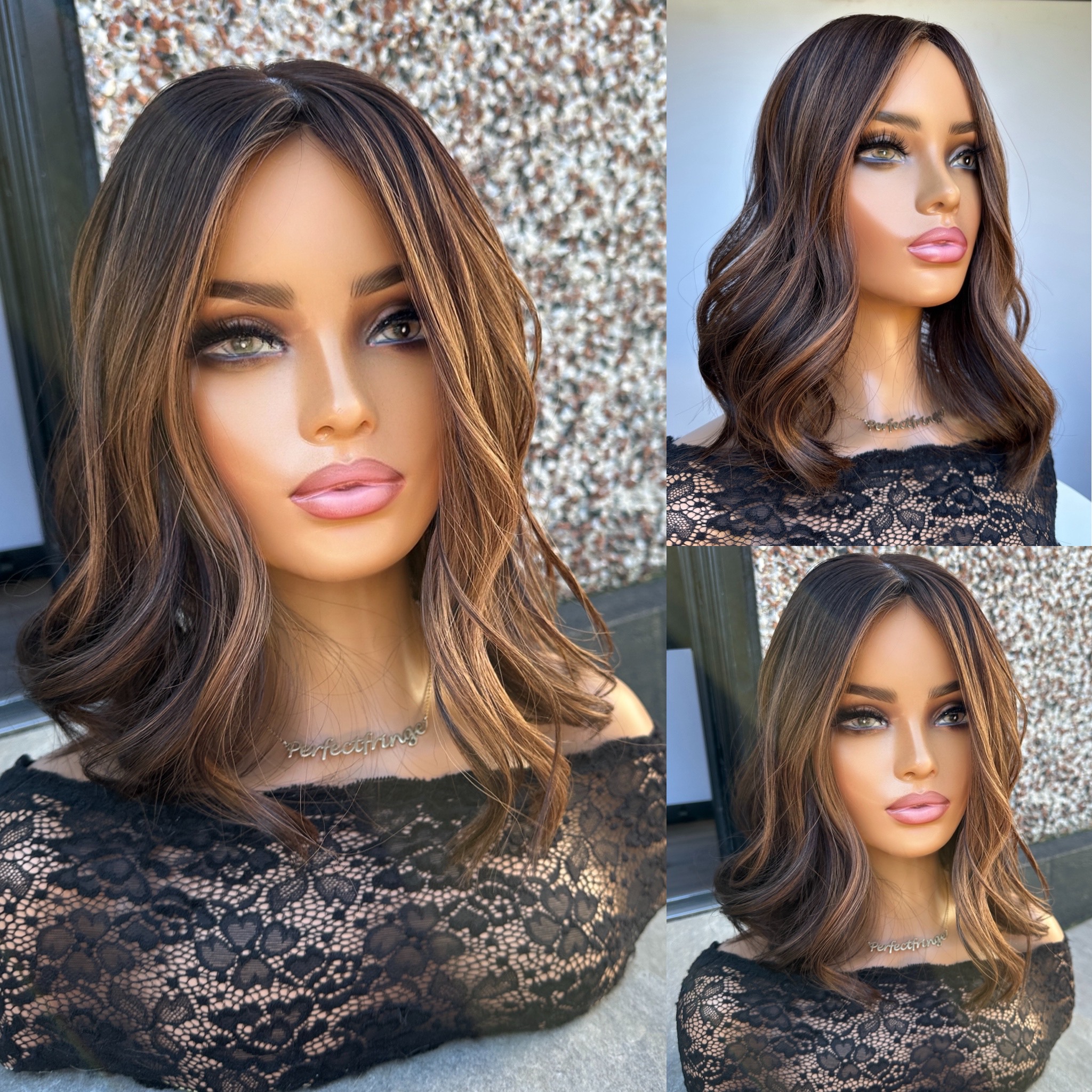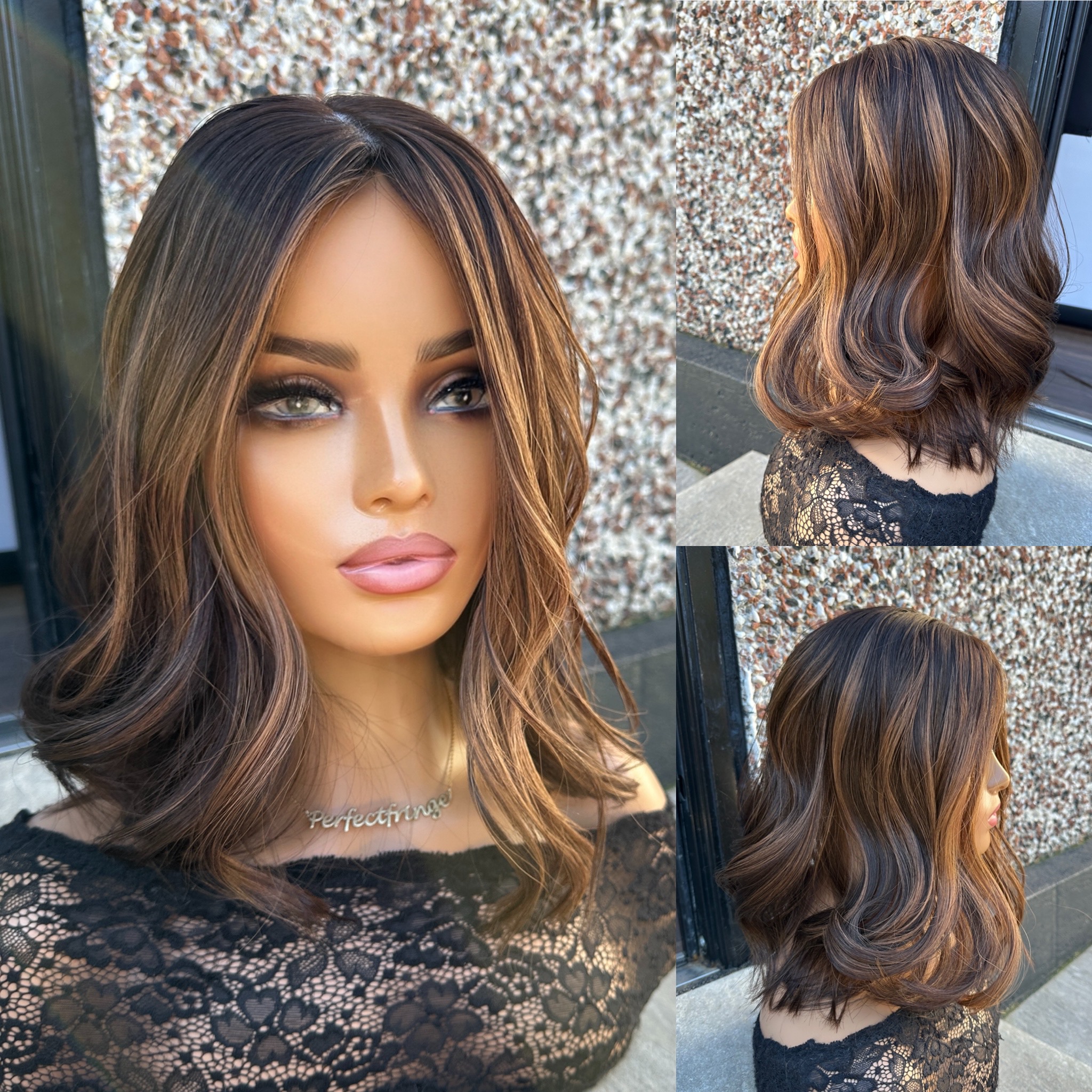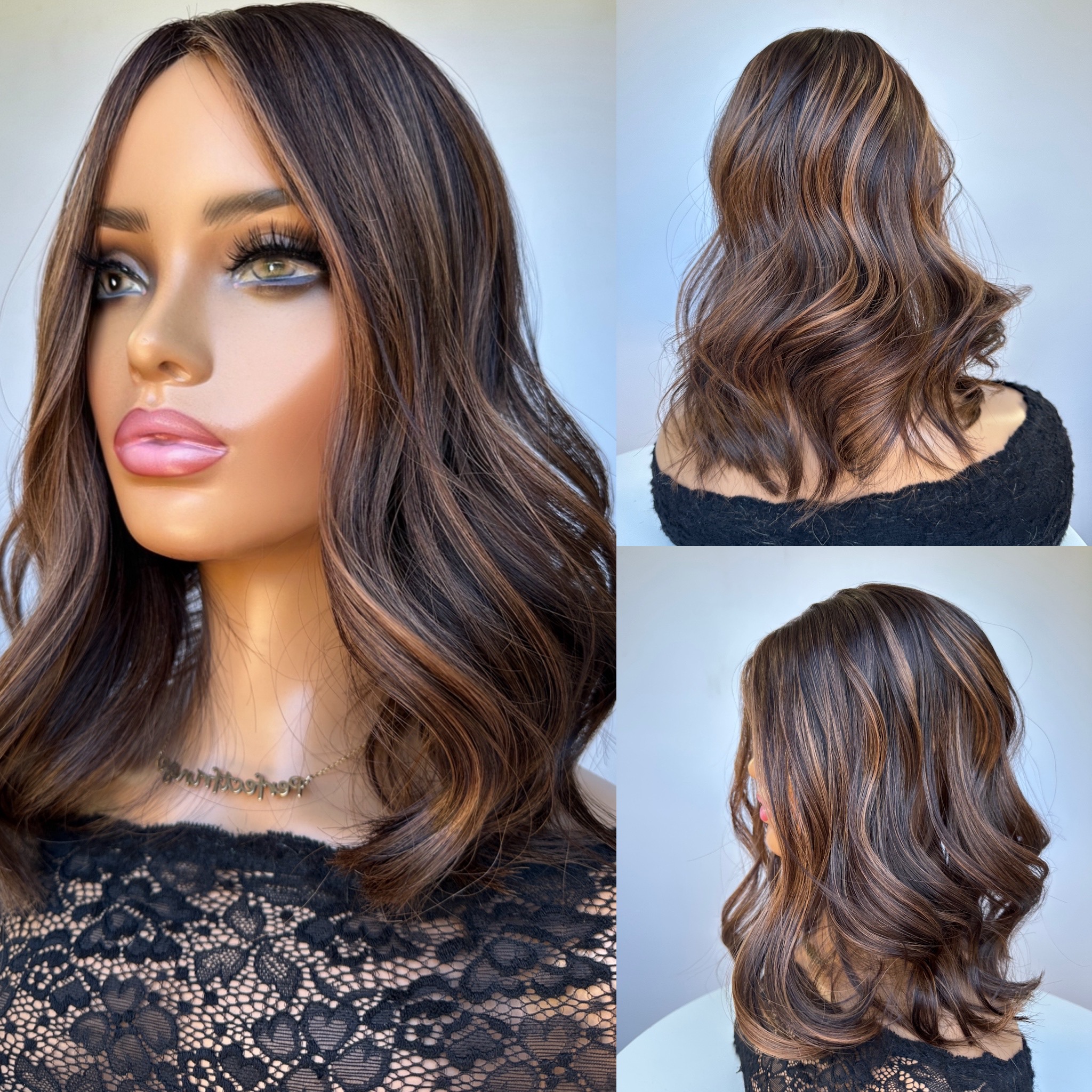 Virgin Medium Brown with sweet butterscotch toffee highlights/money piece