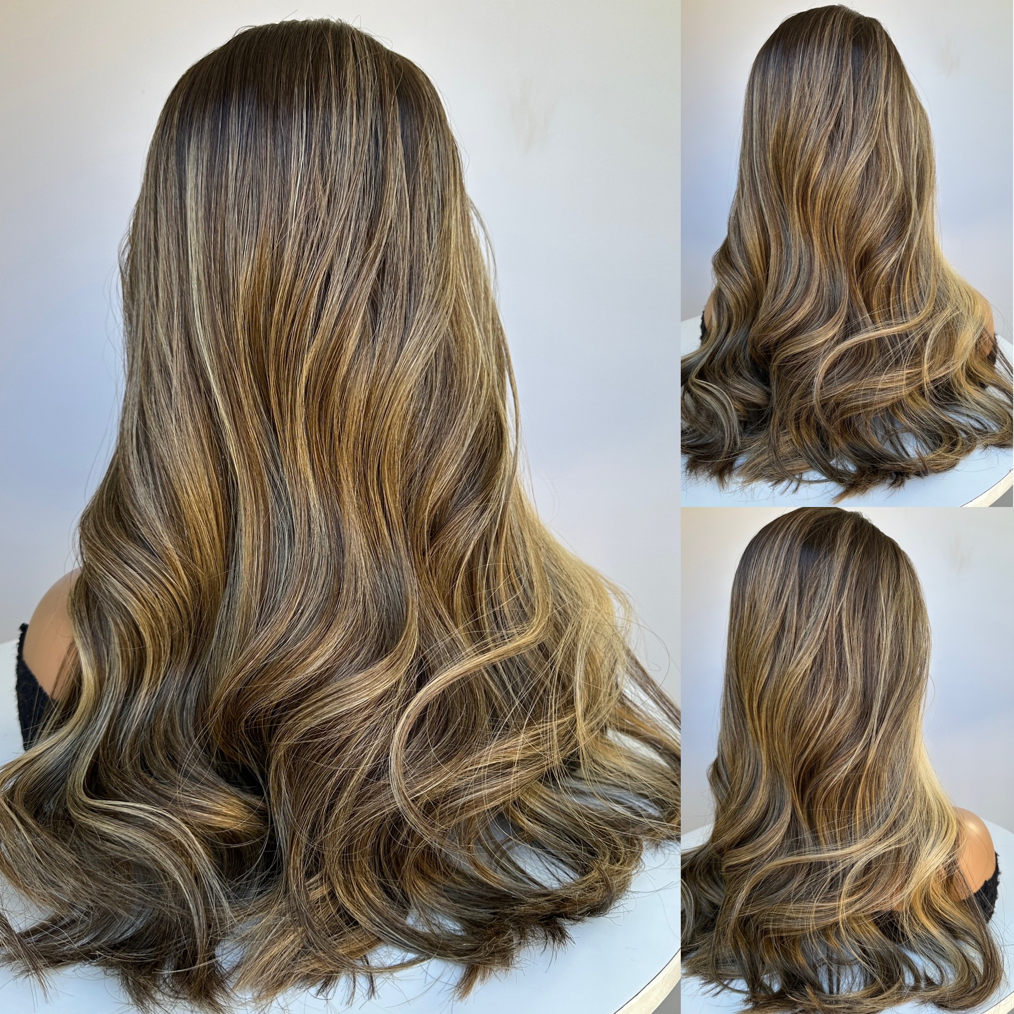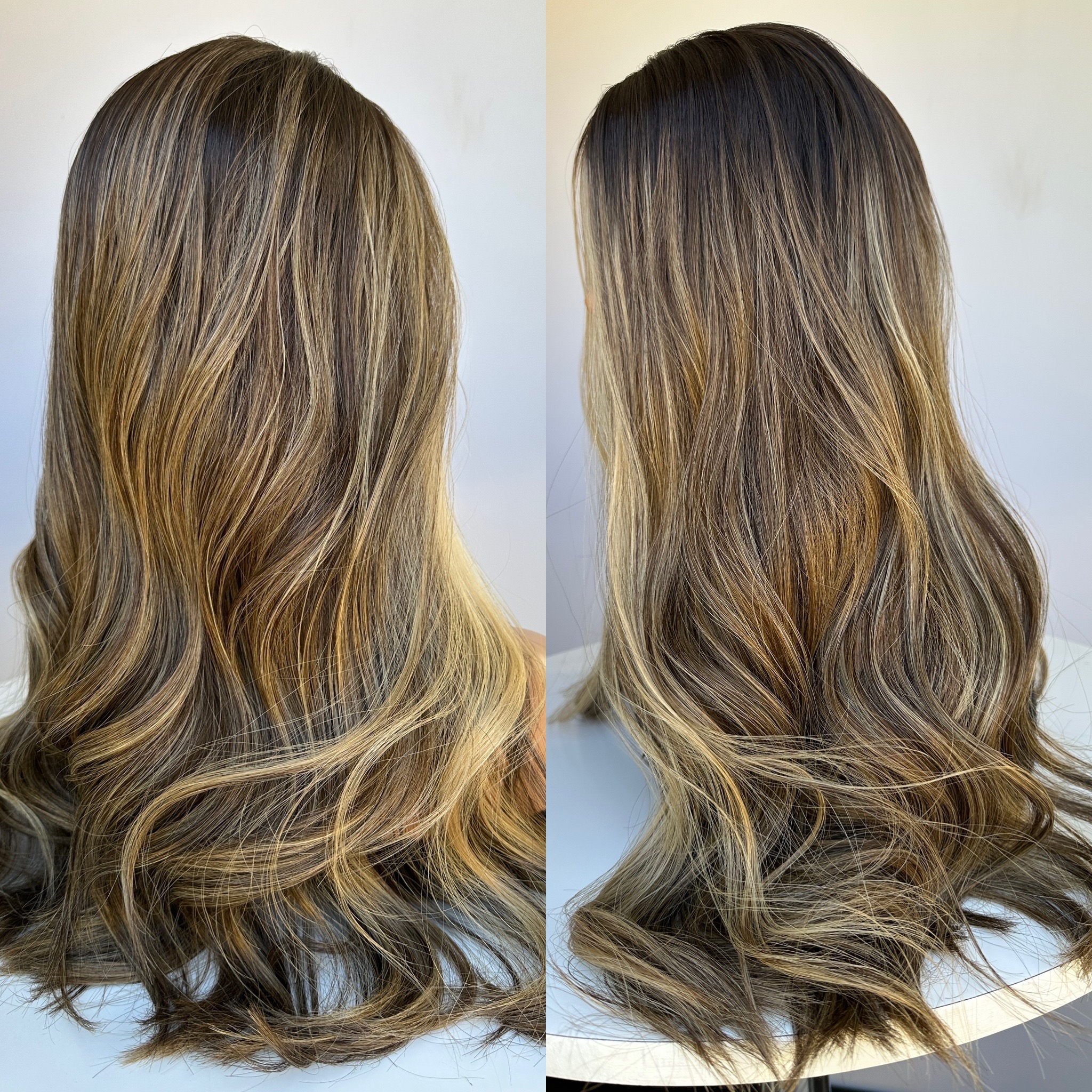 Wow Shade! Light Brown, Sun-Kiss and Blonde Mix, Beautiful Prominent Money Piece. Not a very warm shade, more neutral blonde/brown mix. Level 6 Rich Chocolate Ombre 3D.