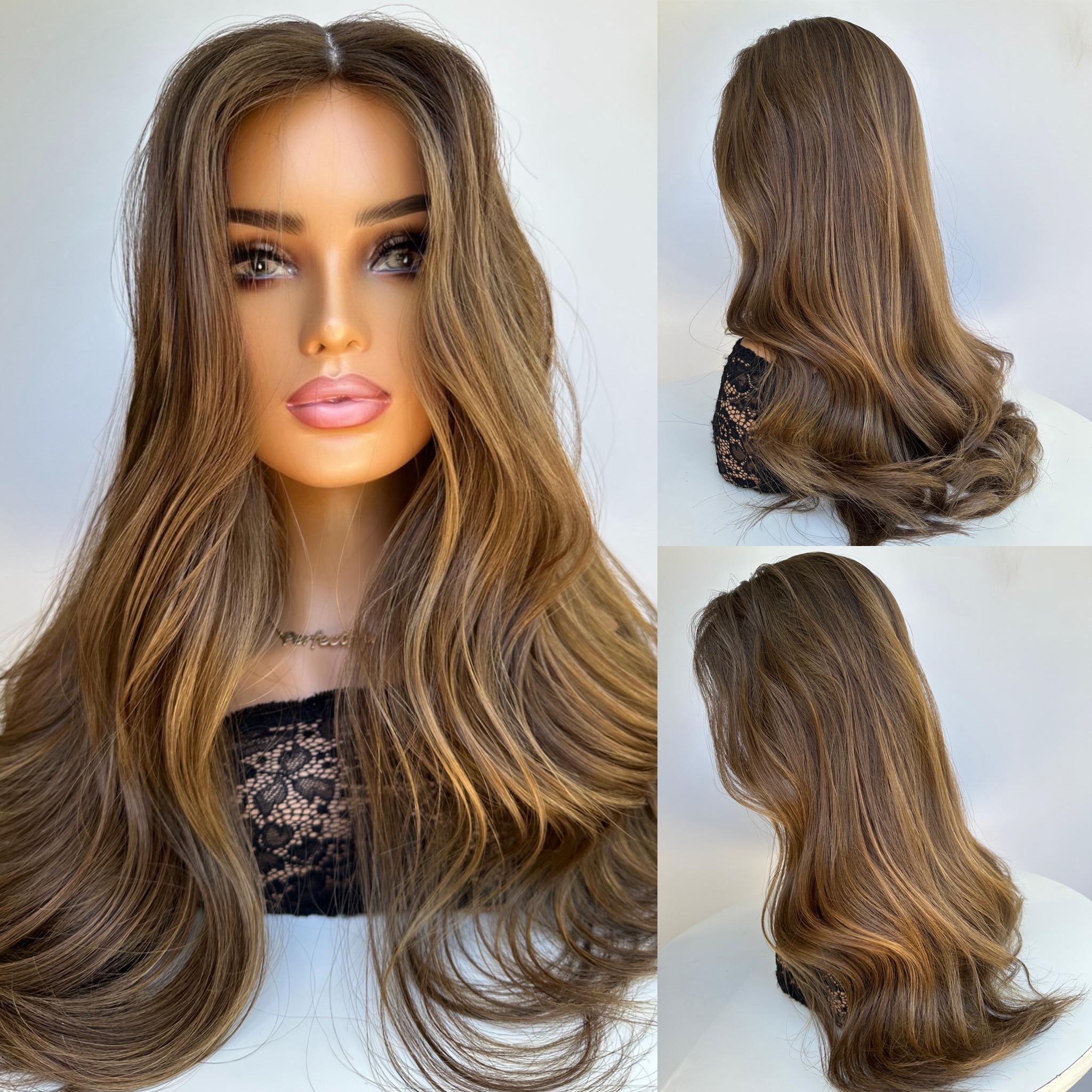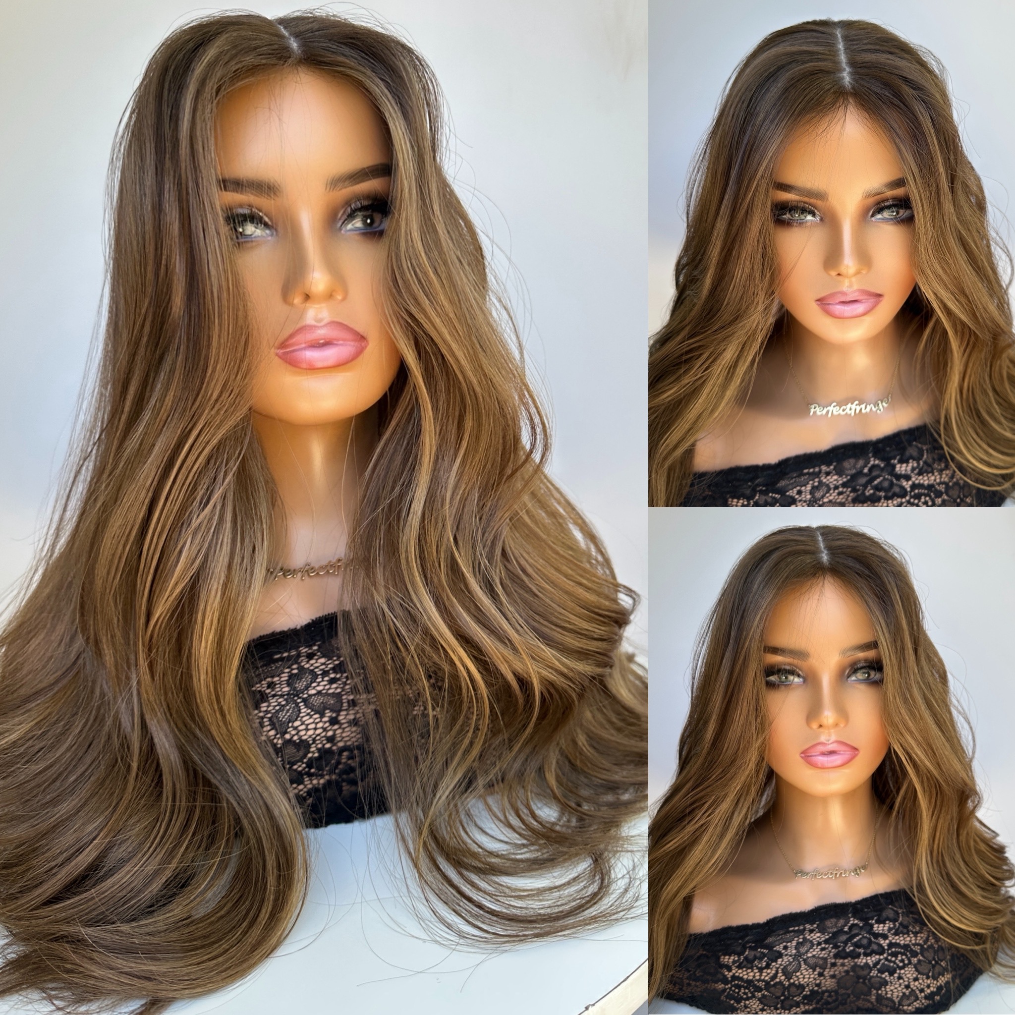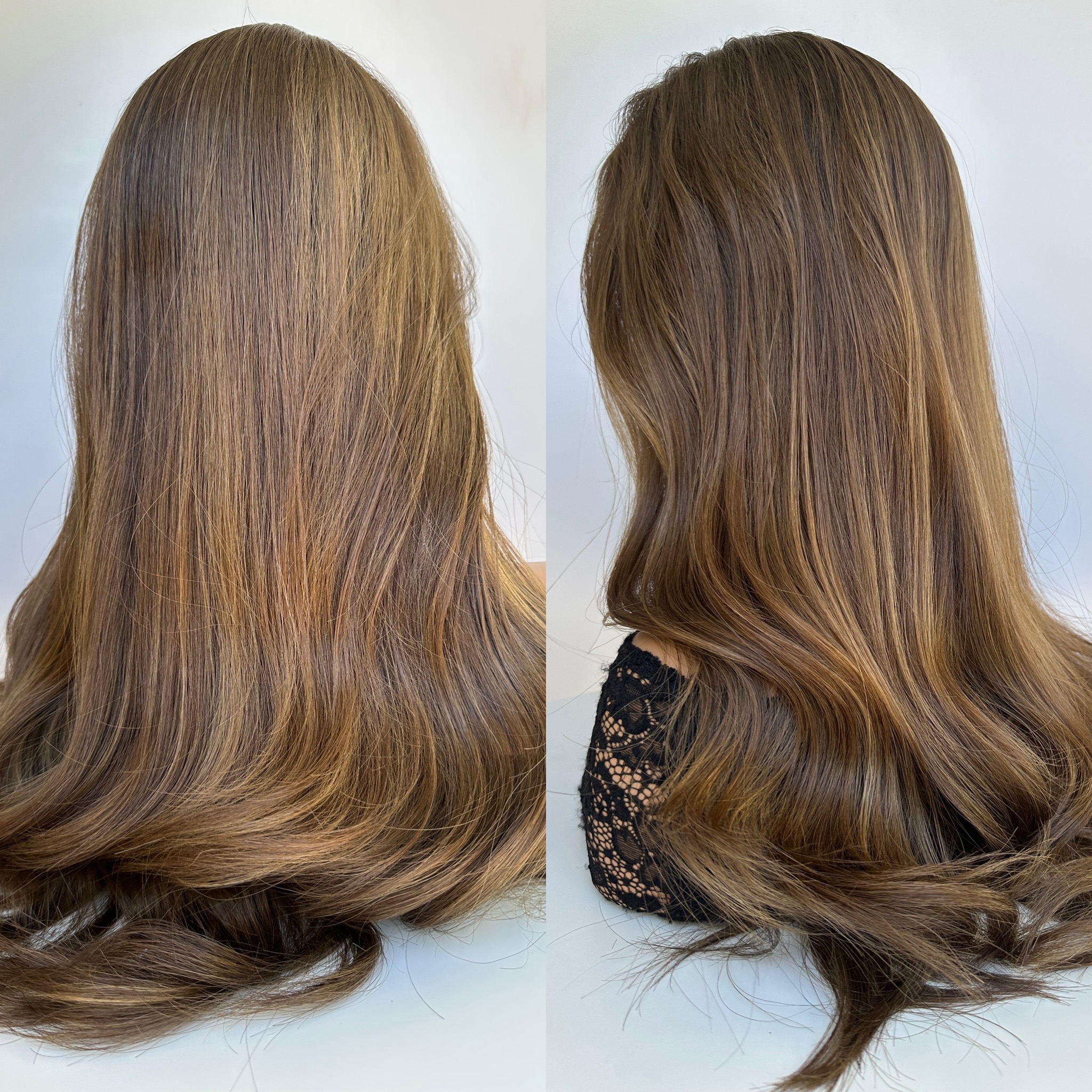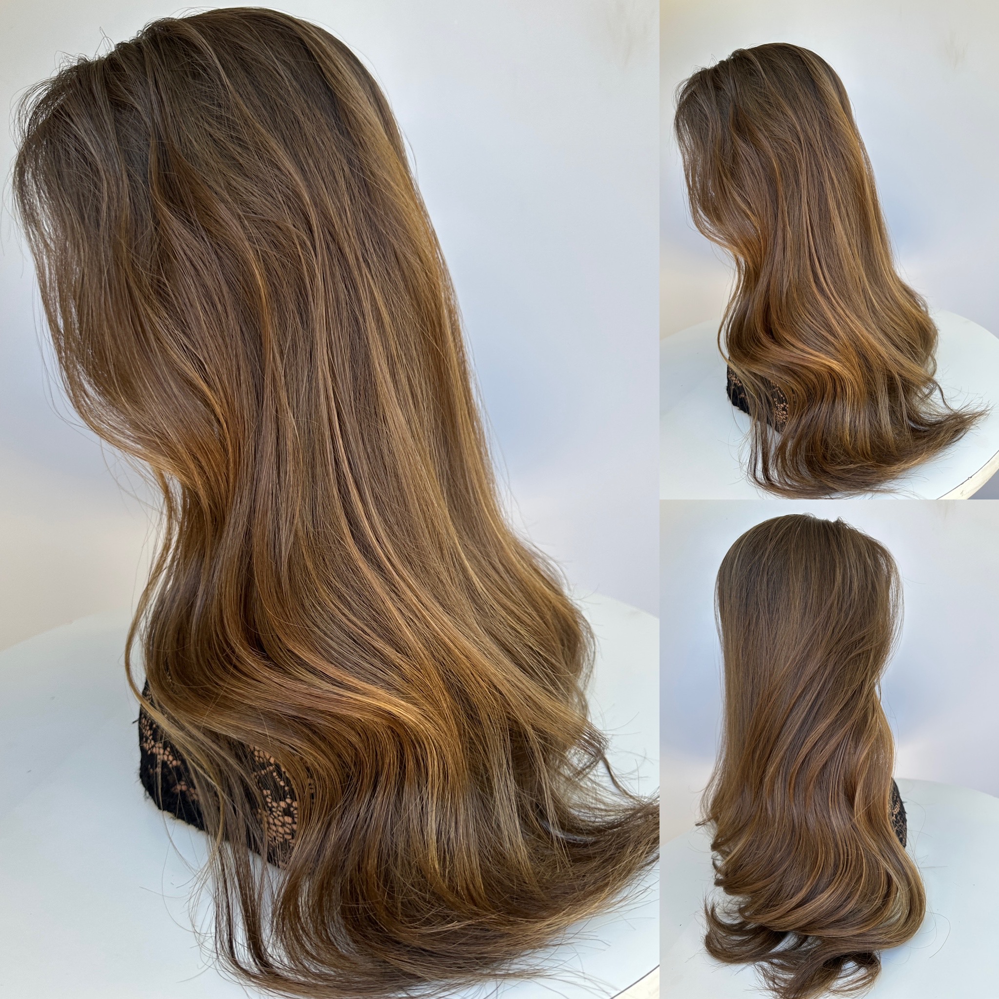 Light/Medium golden brown with subtle highlights and slightly darker ombre/root smudge, stunning yet super natural colour-work
