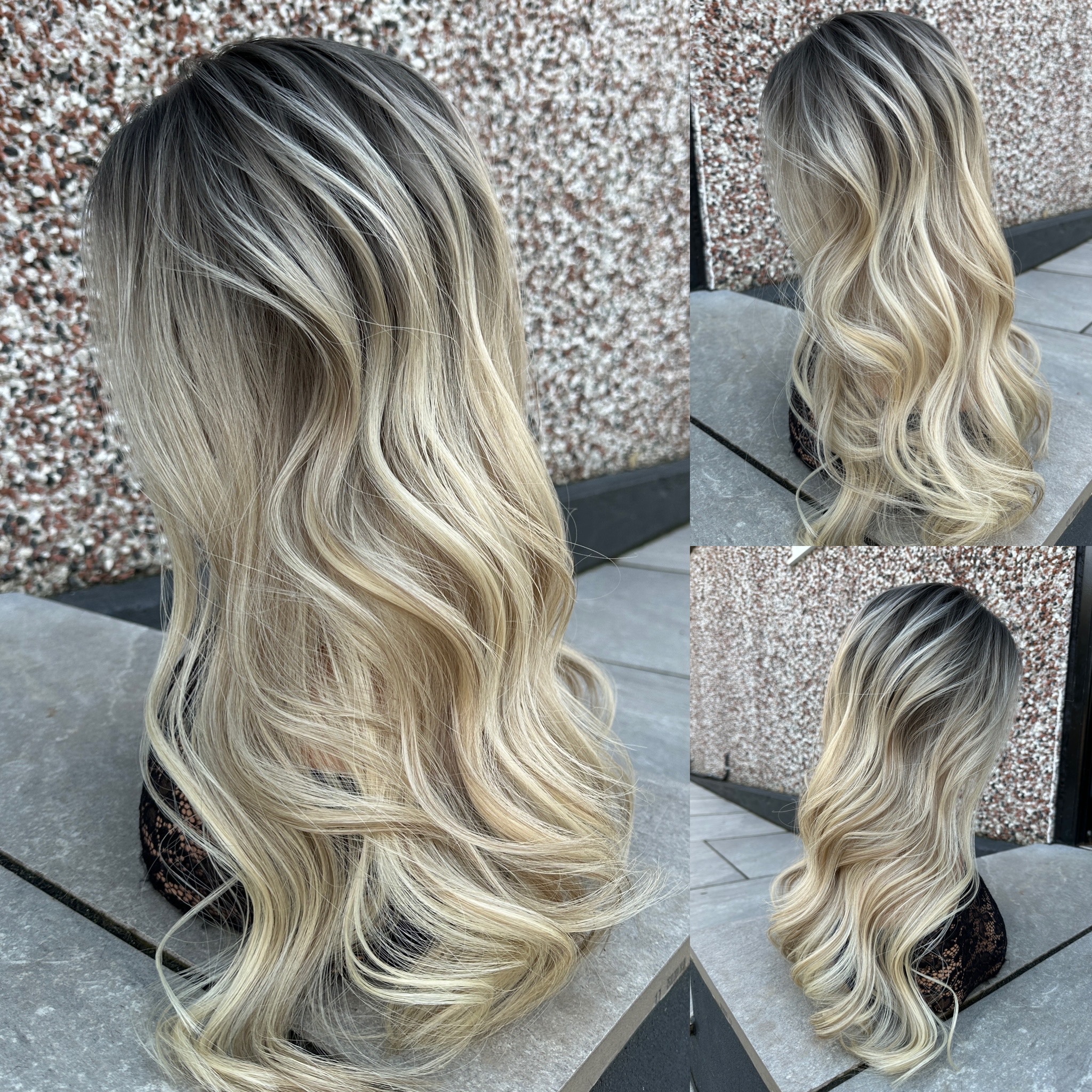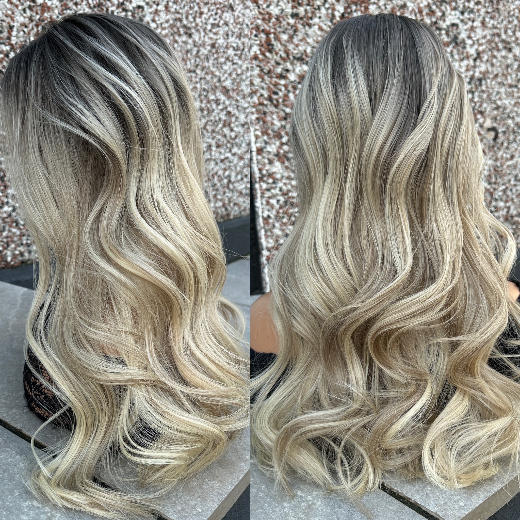 Creamy Blonde with level 6/7 ashy ombre/roots and beige lowlights for dimension