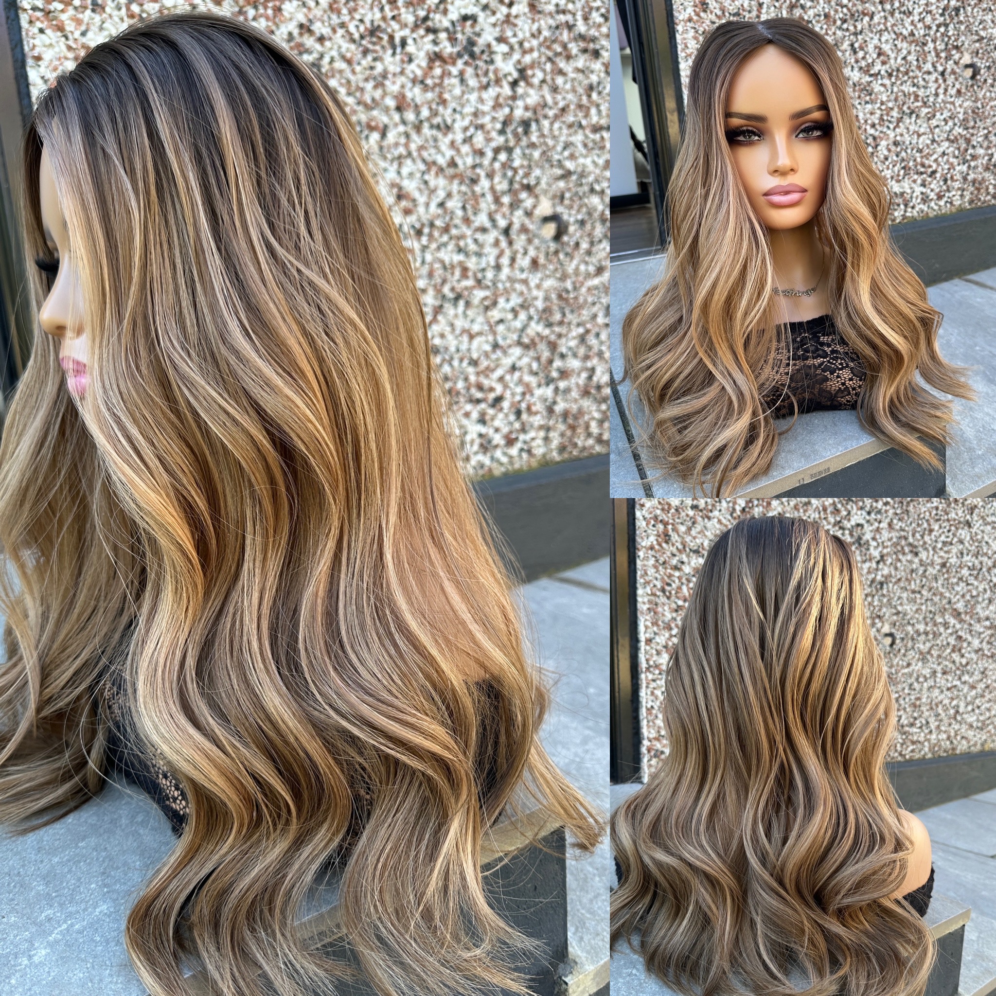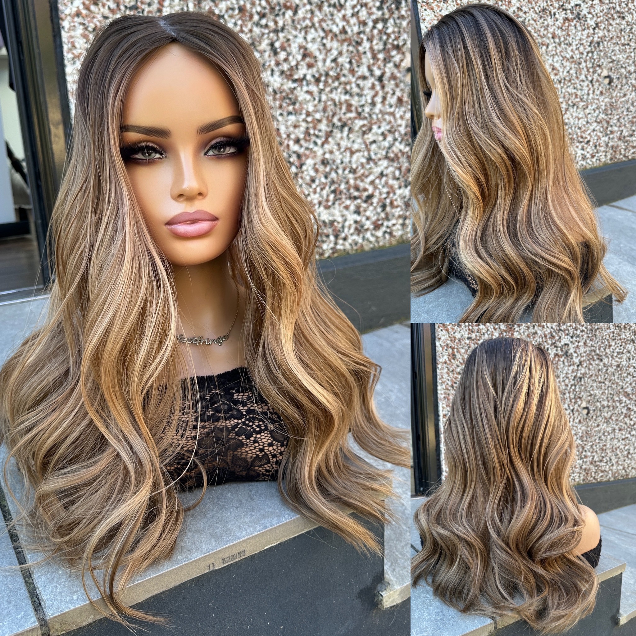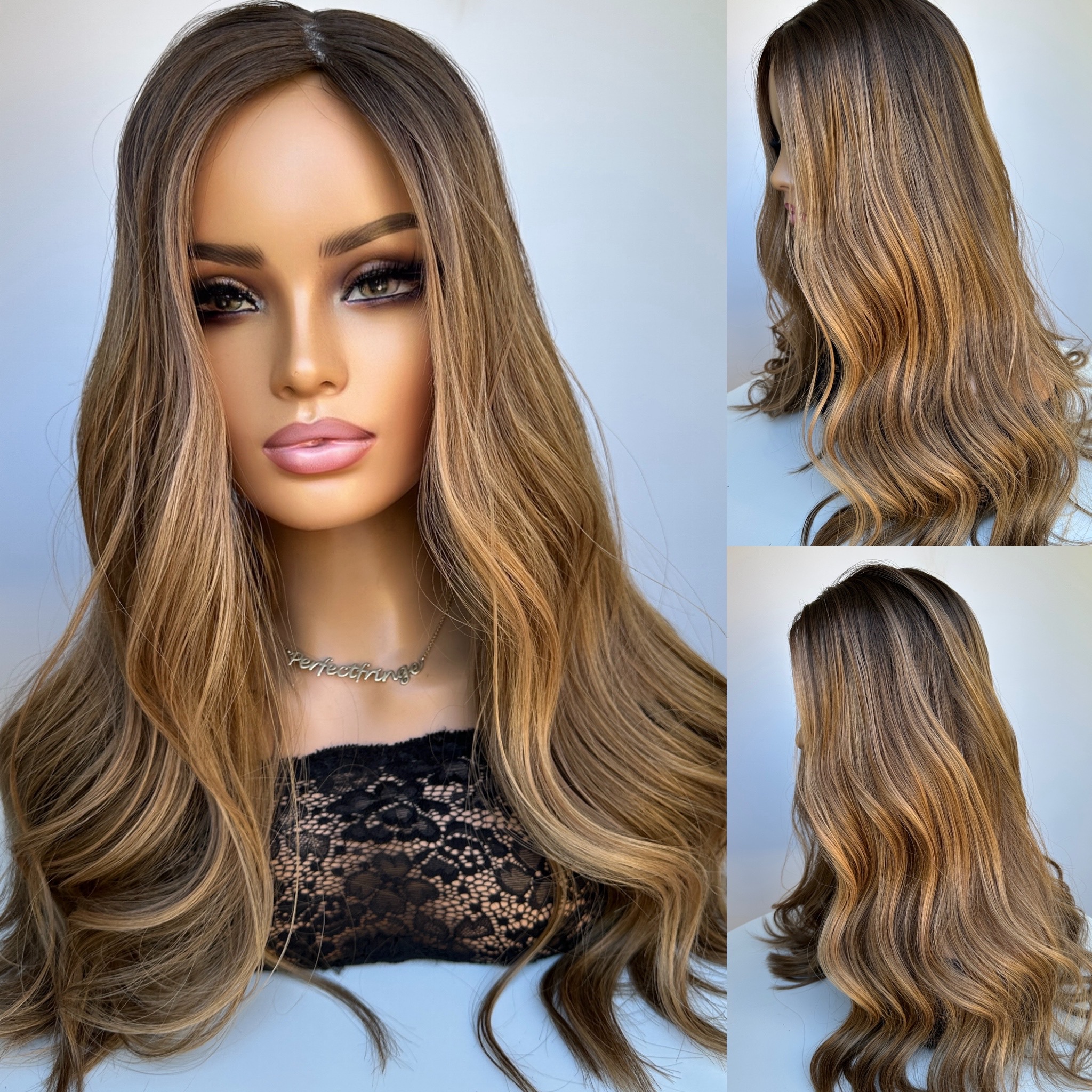 Honey Gale Golden Light Shimmering Brown with Warm Vanilla Swirls & Natural 3D Ombre