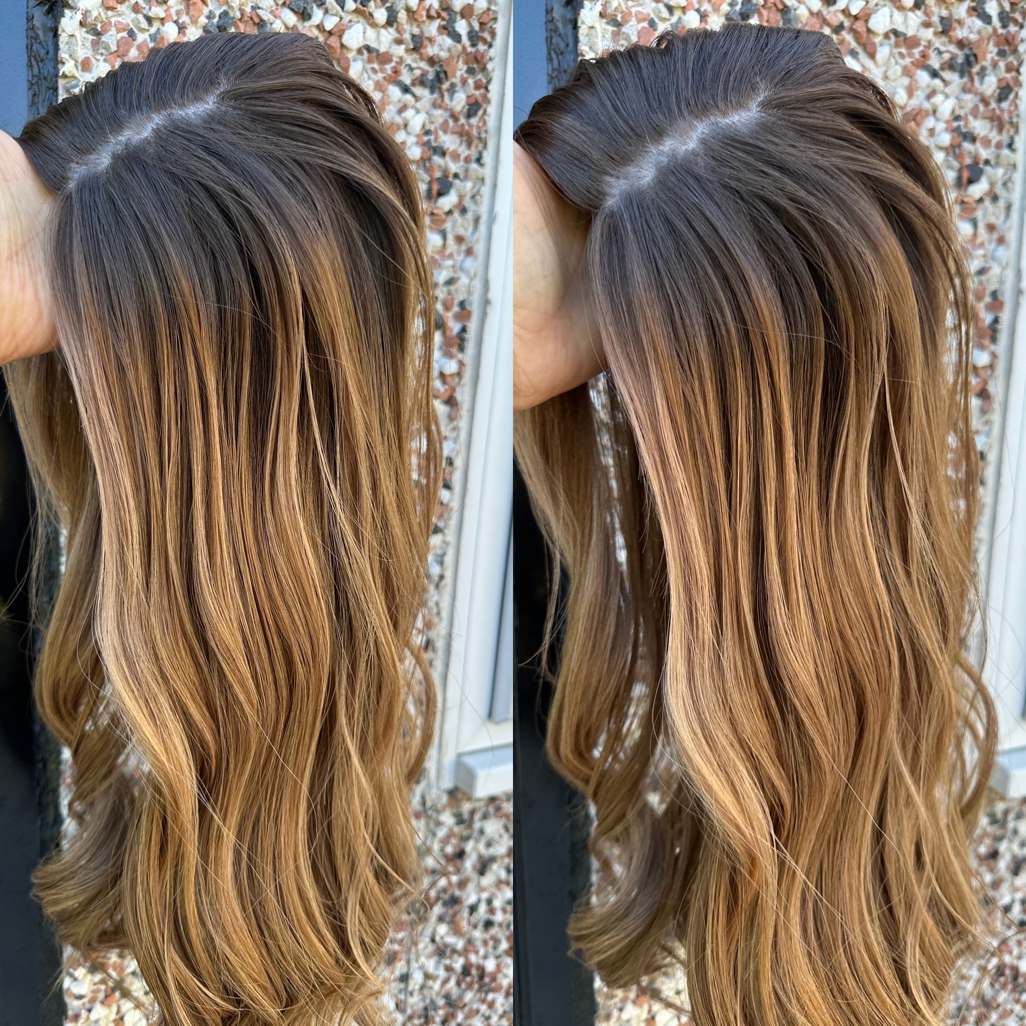 A Luxury Silk Hair Topper which blends beautifully with your own hair to hide hair loss and thinning. The end result is natural and undetectable.