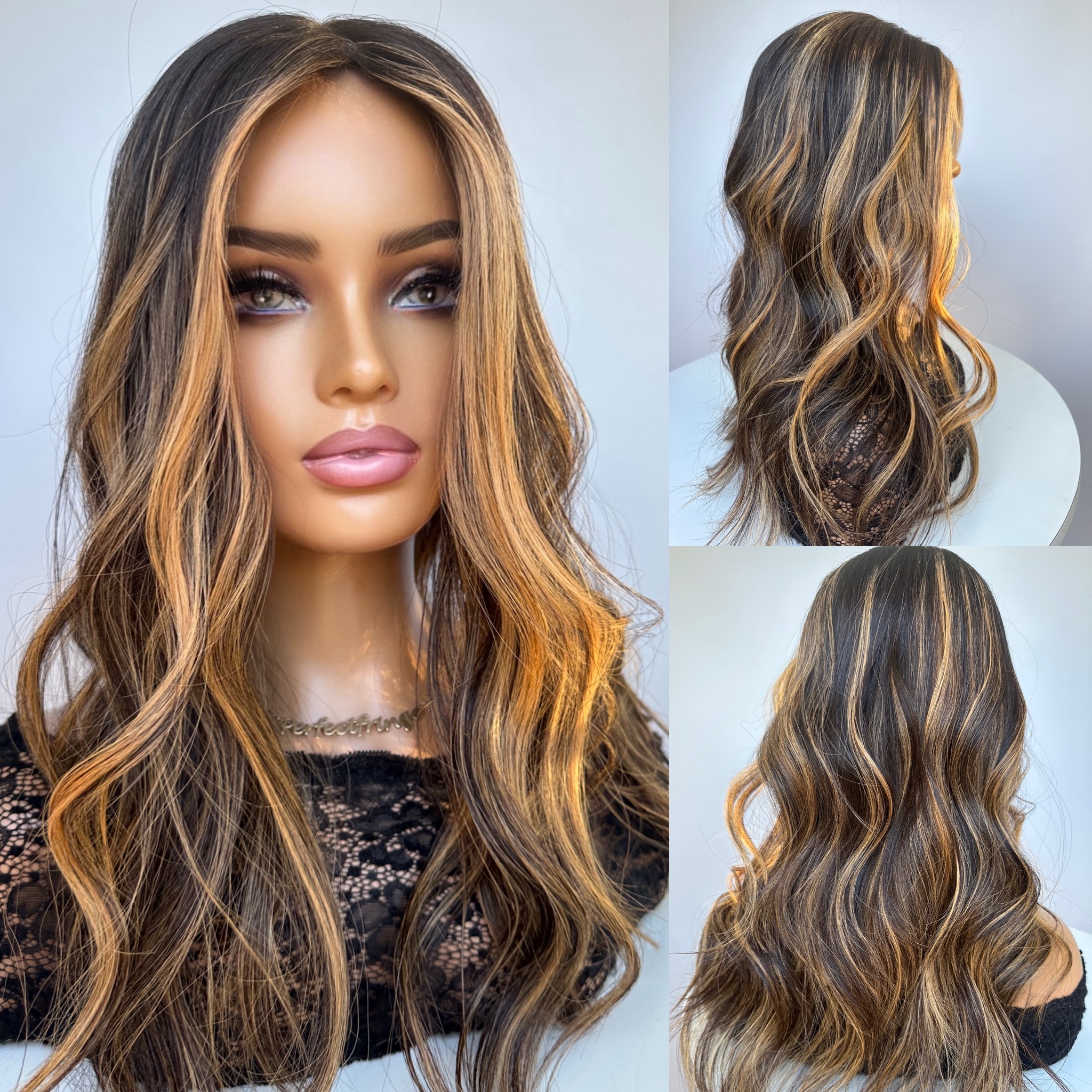Natural Virgin Dark (not darkest) Brown with Super Bright Gold Vibrant Highlights & Money Piece