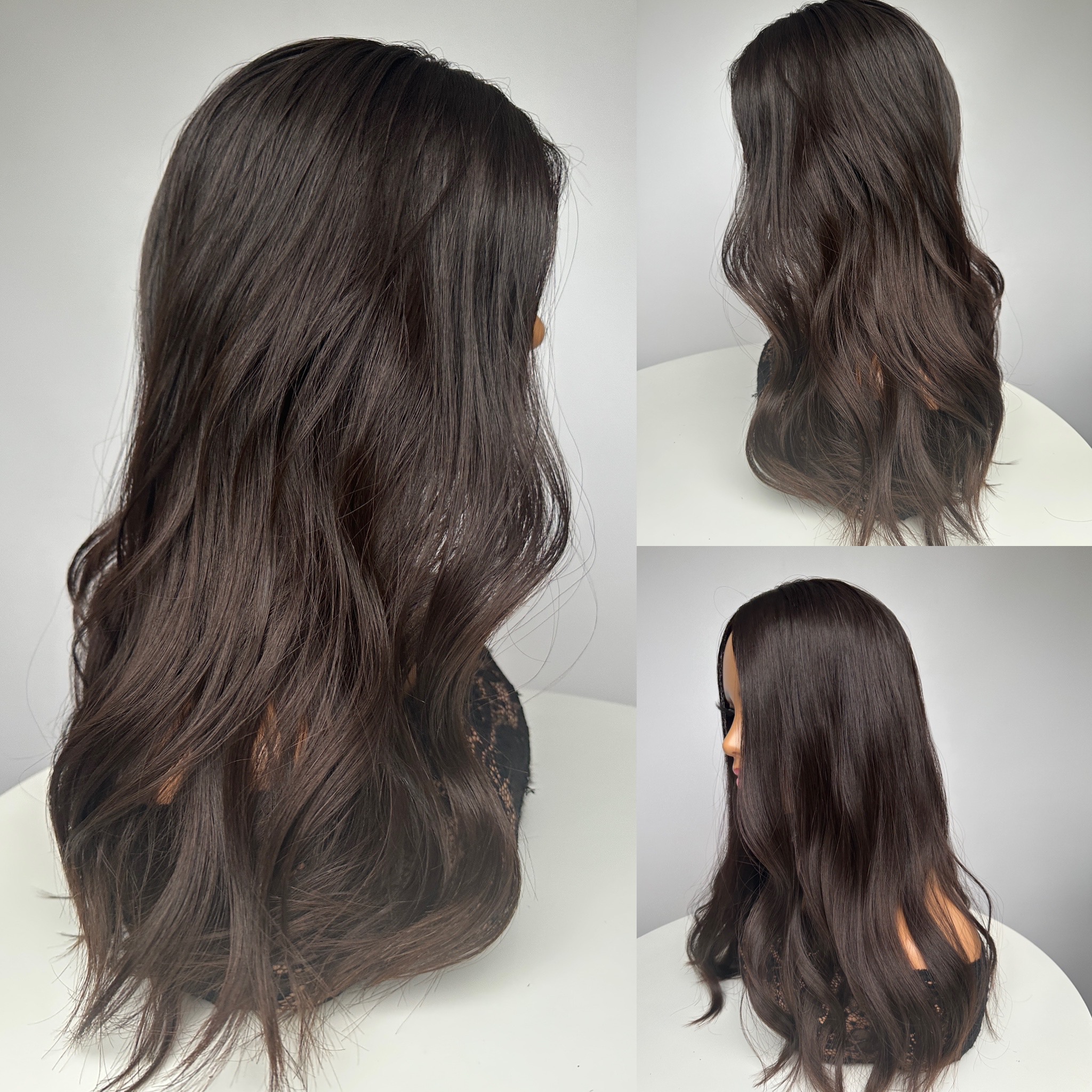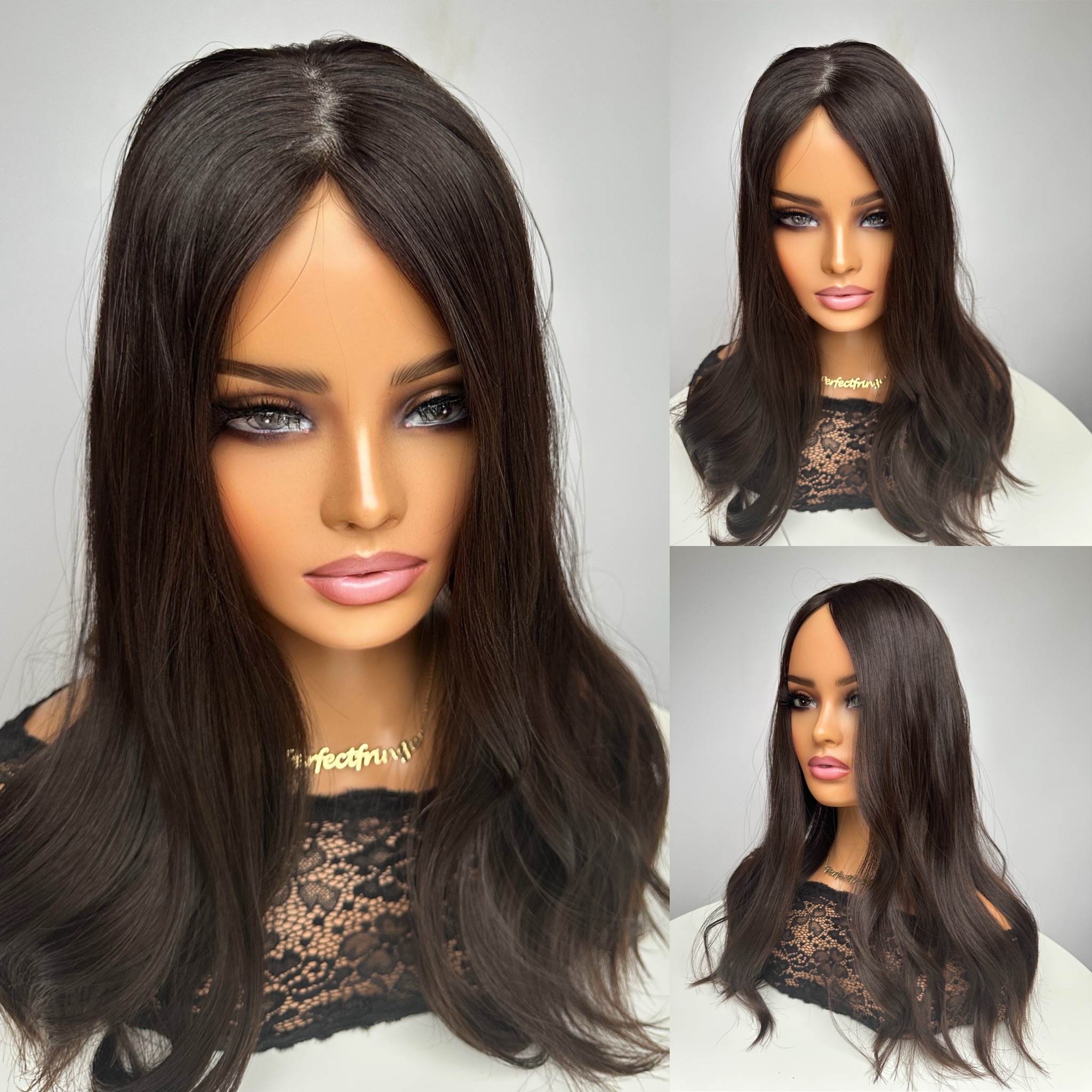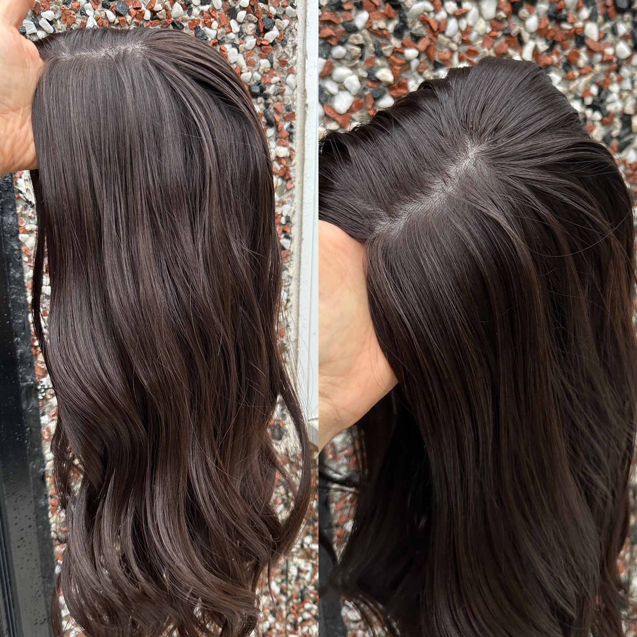 A Luxury Silk Hair Topper which blends beautifully with your own hair to hide hair loss and thinning. The end result is natural and undetectable.