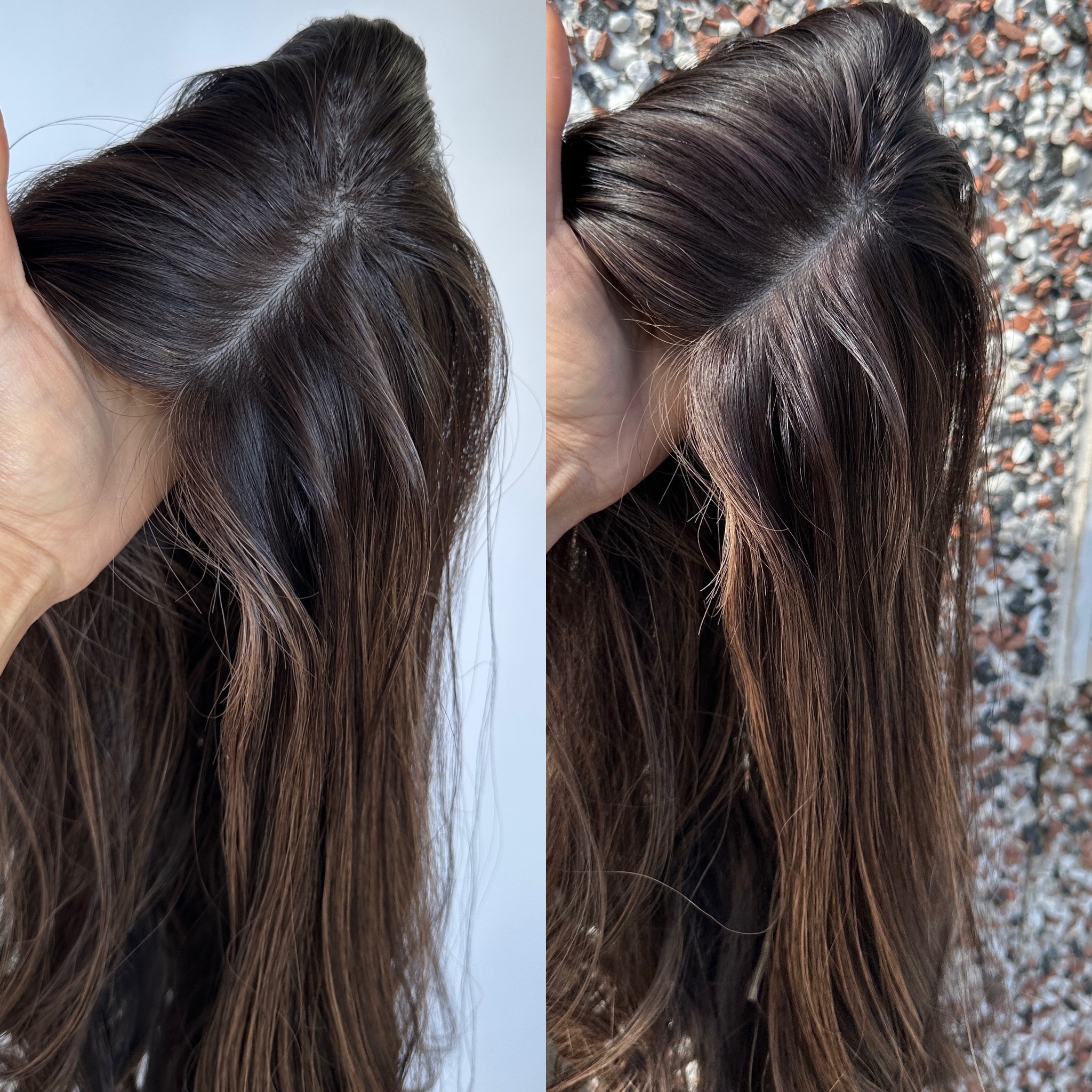 Raw Virgin Dark Brown (not darkest) Base & Sweet Light, Slightly Ashy, Chocolate Highlights